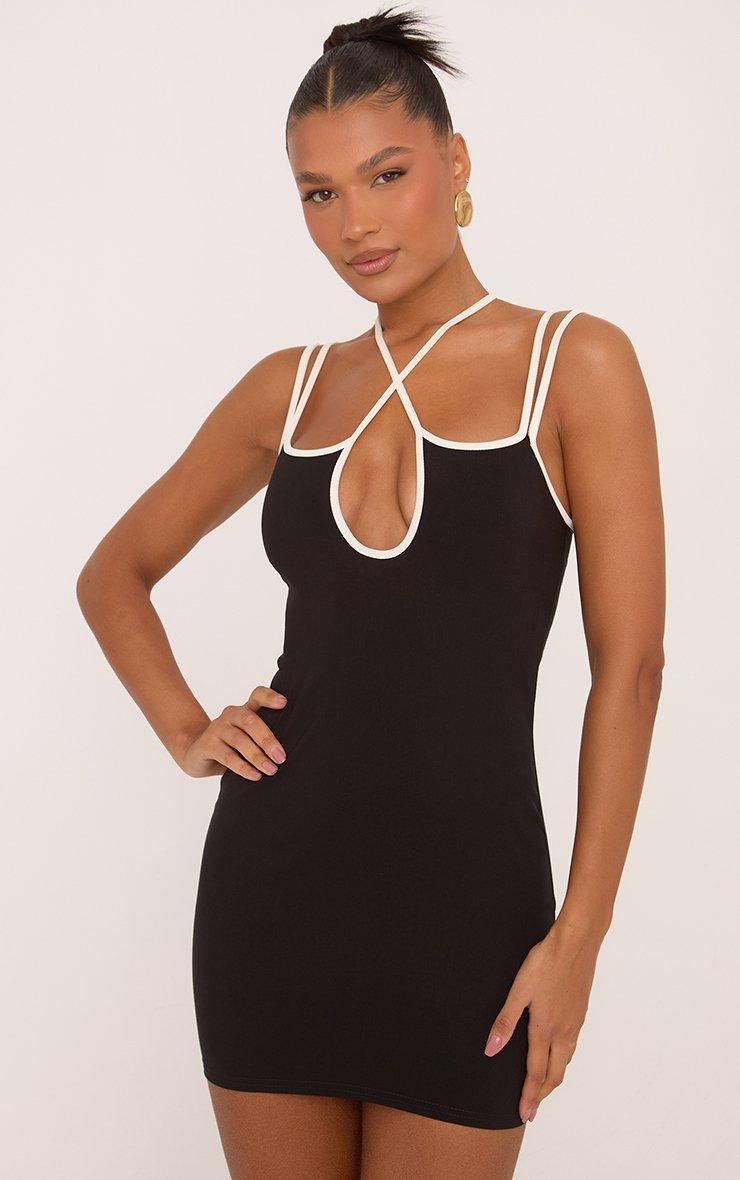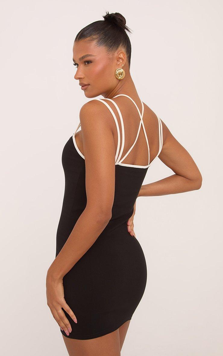 Contrast Strap Detail Bodycon Mini Dress In Black