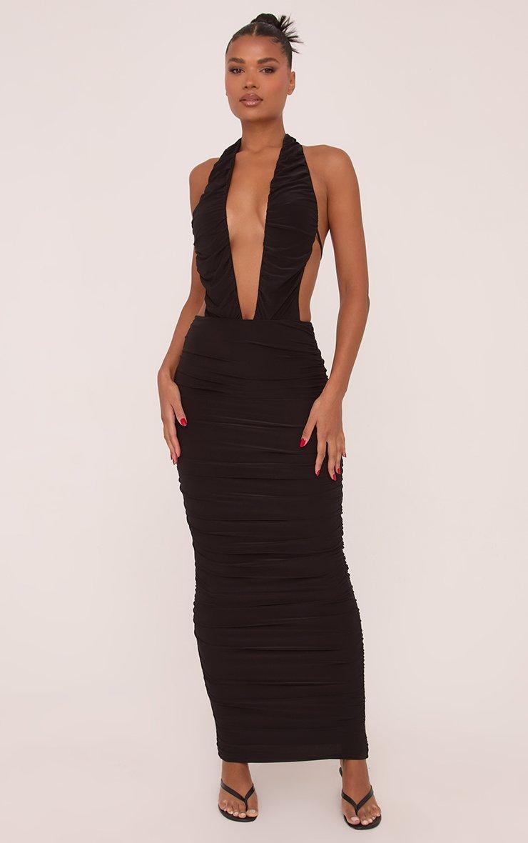 Turn up the glam with this High Waist Double Layer Ruched Maxi Skirt in Black Slinky! This black ruched maxi skirt hugs your curves in all the right places with its high waist fit and luxe double-layer fabric. Crafted from black slinky fabric, this maxi skirt is perfect for turning heads on a night out. Pair it with a crop top and heels for a look that's effortlessly chic and totally unforgettable!