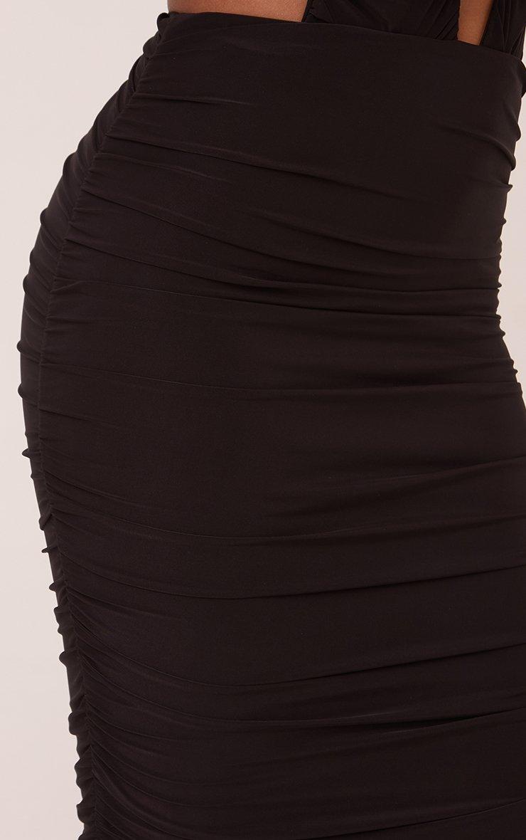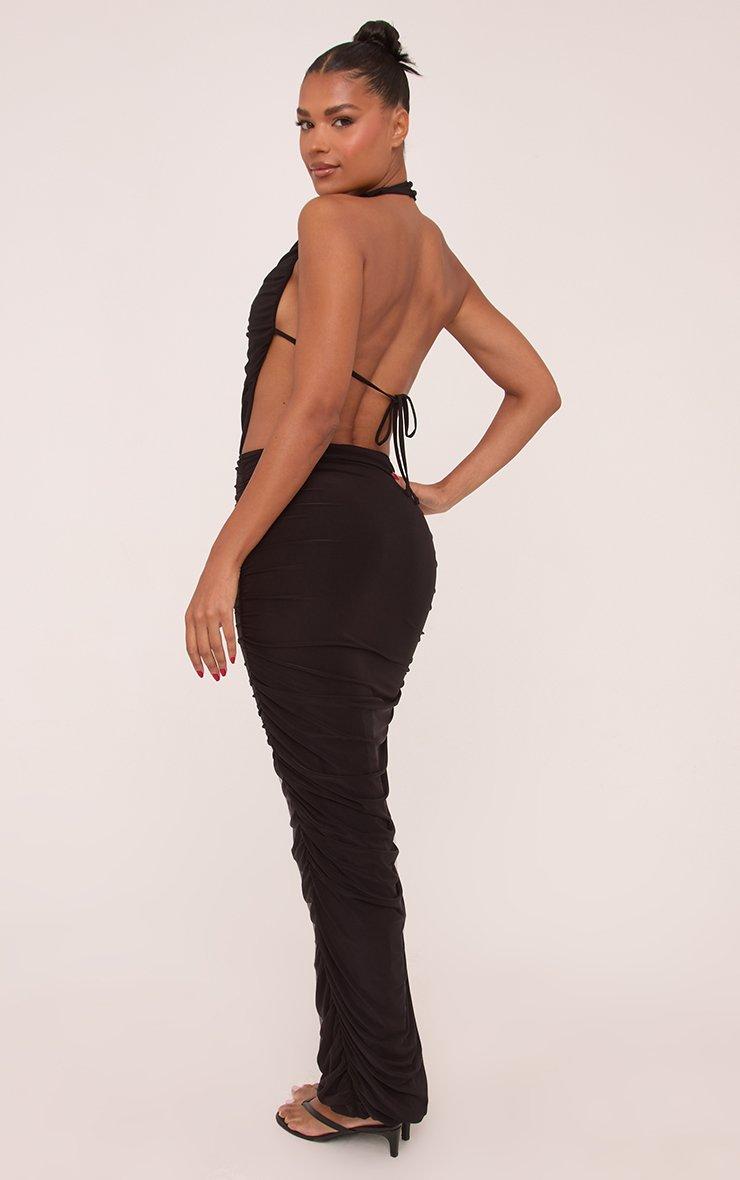 High Waist Double Layer Ruched Maxi Skirt In Black Slinky