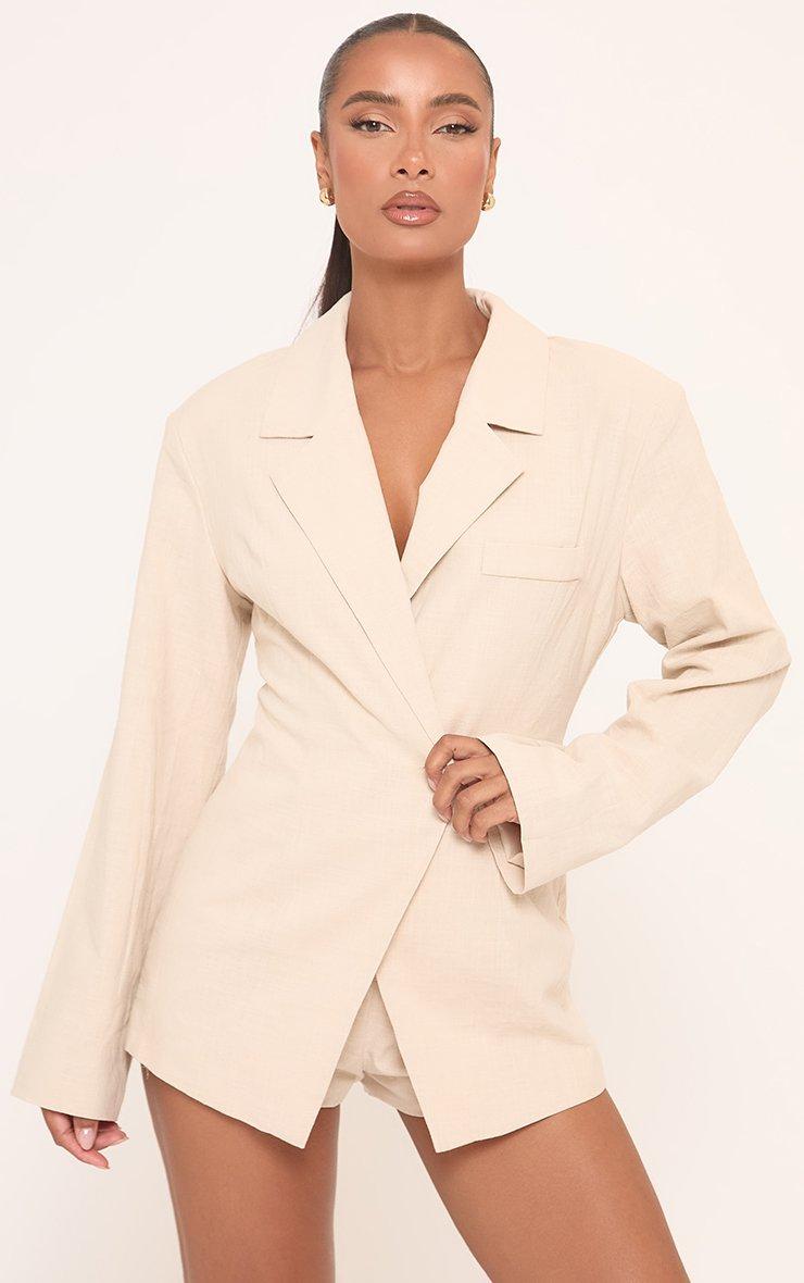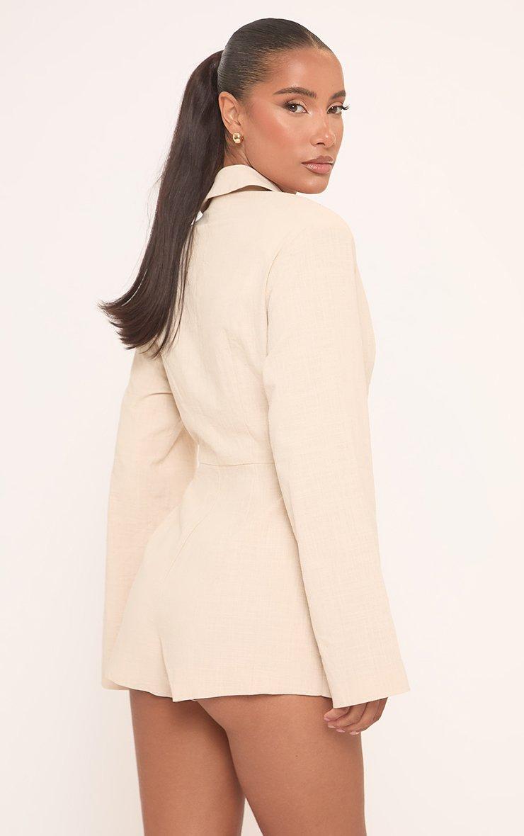 Long Sleeve Tailored Blazer Playsuit In Stone Linen