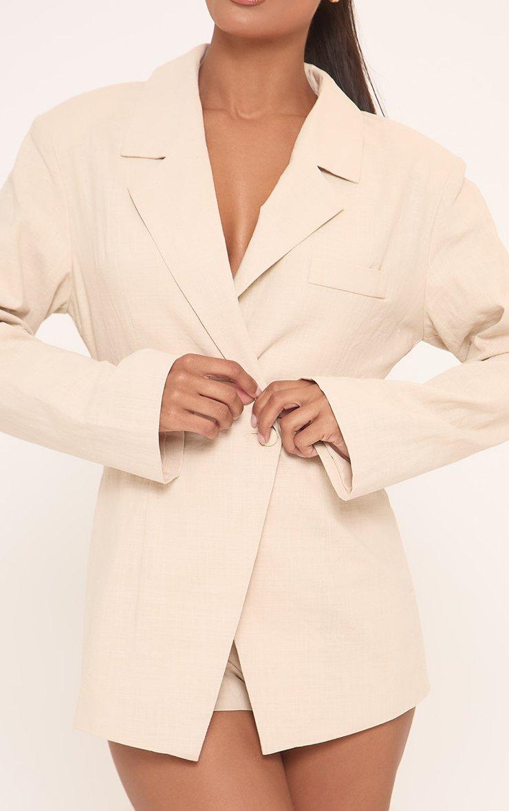 Boss babe vibes, doll? Featuring a stone linen material with long sleeves and tailored blazer playsuit design—this piece is sharp, chic, and perfect for making a statement from day to night. Effortlessly cool.