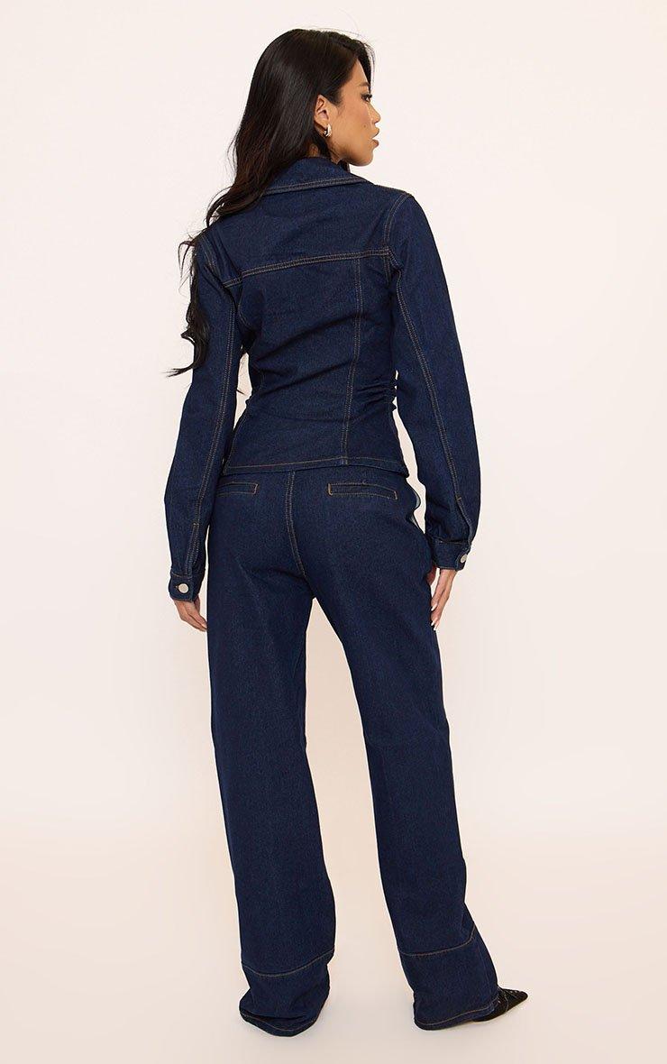 Serve tailored vibes in our Mid Rise Seam Detail Tailored Jeans In Indigo Blue Denim. These tailored denim jeans feature structured seams and a straight cut for a polished denim look. Style these mid-rise jeans with the matching jacket and pointed heels for brunch-to-bar styling. Ensure to wash following the care instructions on the label before wearing.
