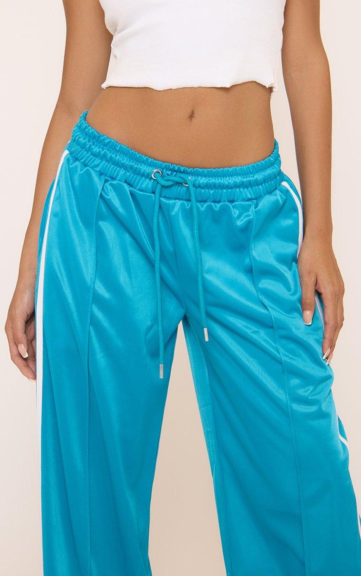 Stay chill and stylish, doll! Featuring soft blue fabric with contrast side stripe and tie waist detailing, these mid-rise joggers bring effortless cool vibes to your casual wardrobe.