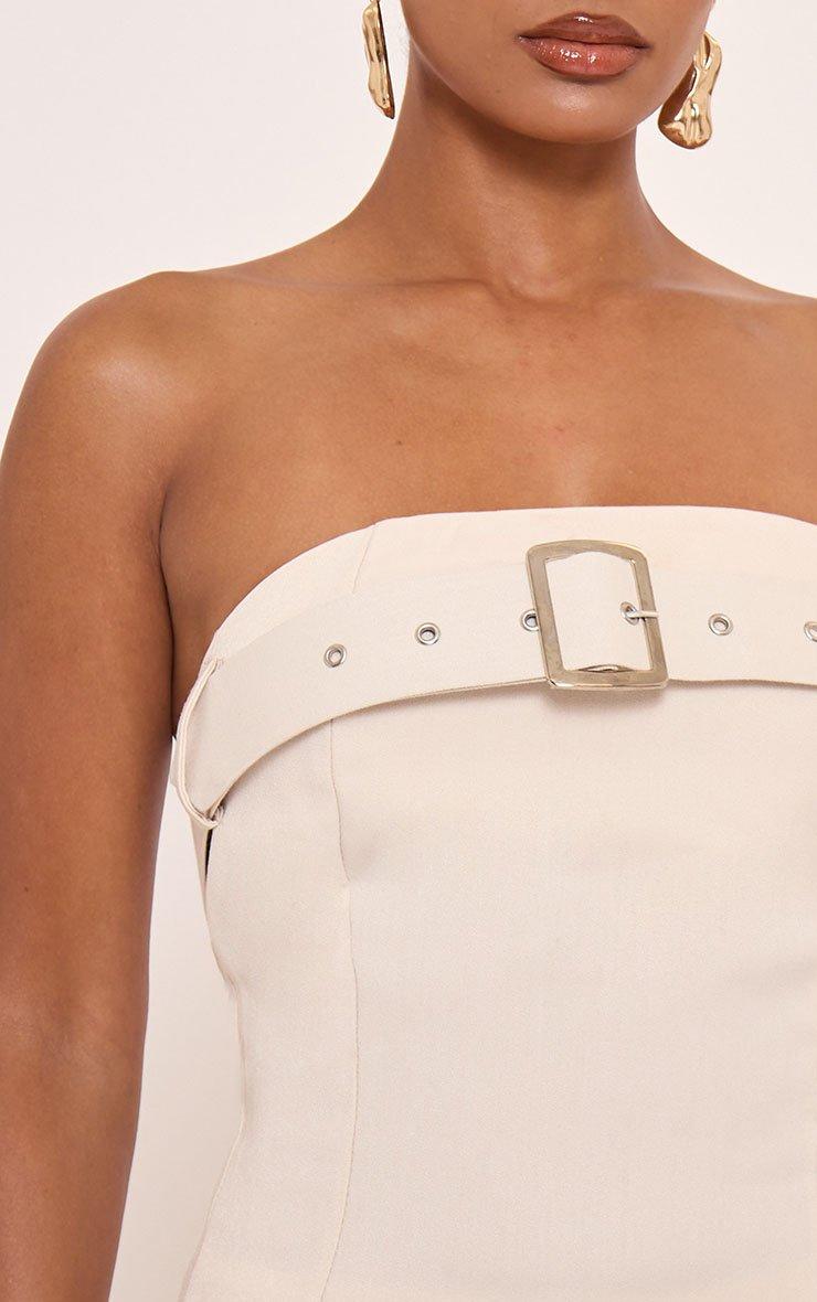 Bandeau Belt Detail Peplum Hem Top In Stone