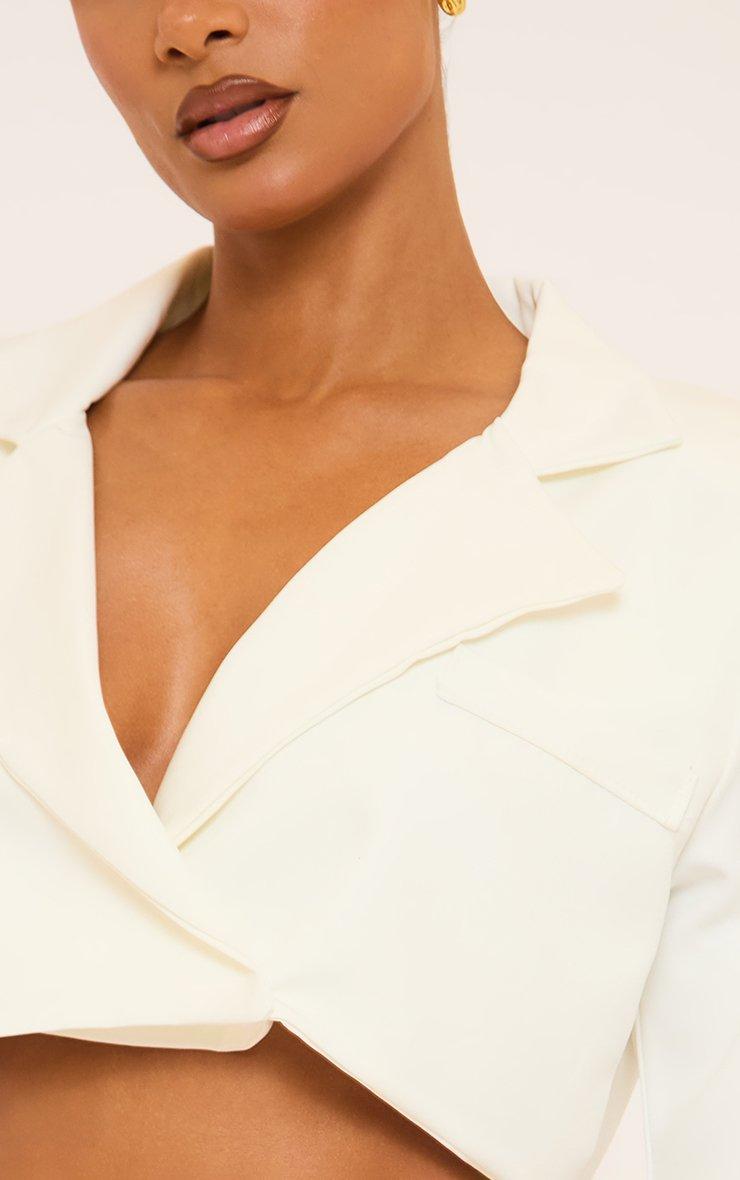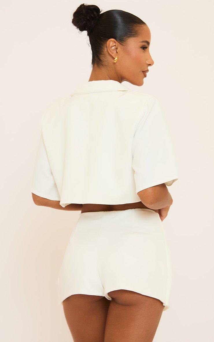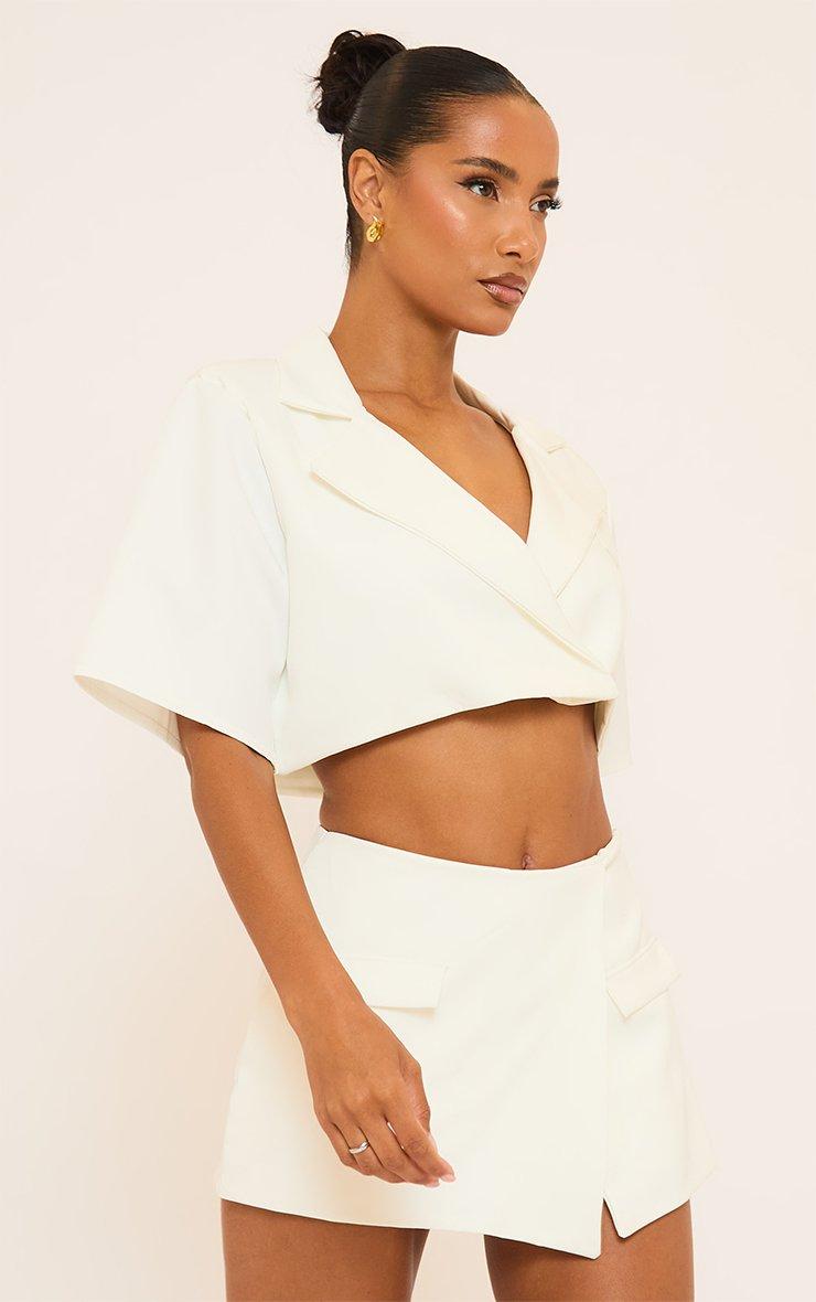 Perfect for brunch dates and city strolls, featuring white material with short sleeves and cropped blazer detailing—this piece brings sharp, chic vibes with a fresh twist, doll. Serve boss energy all day.