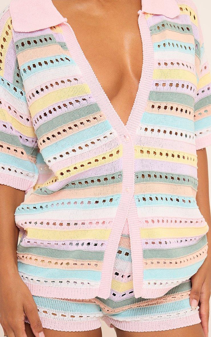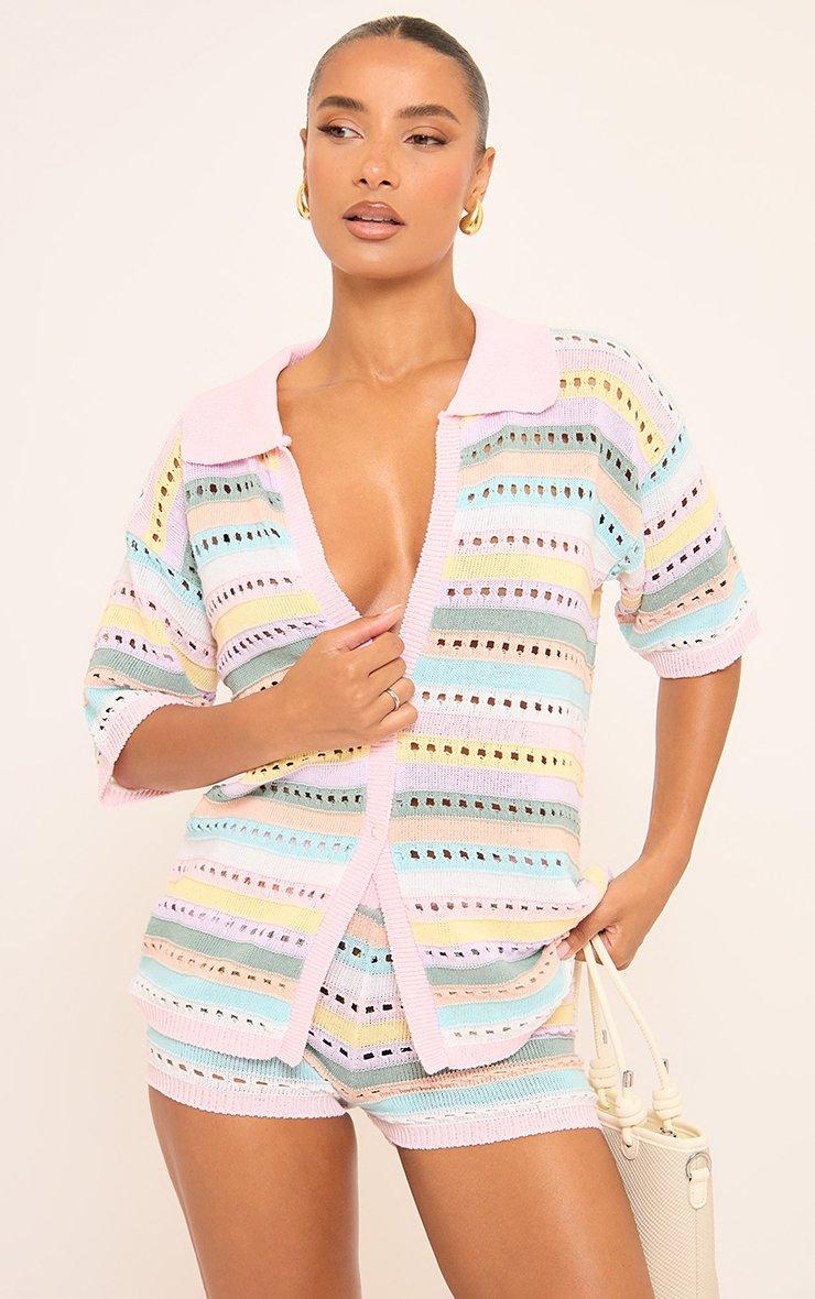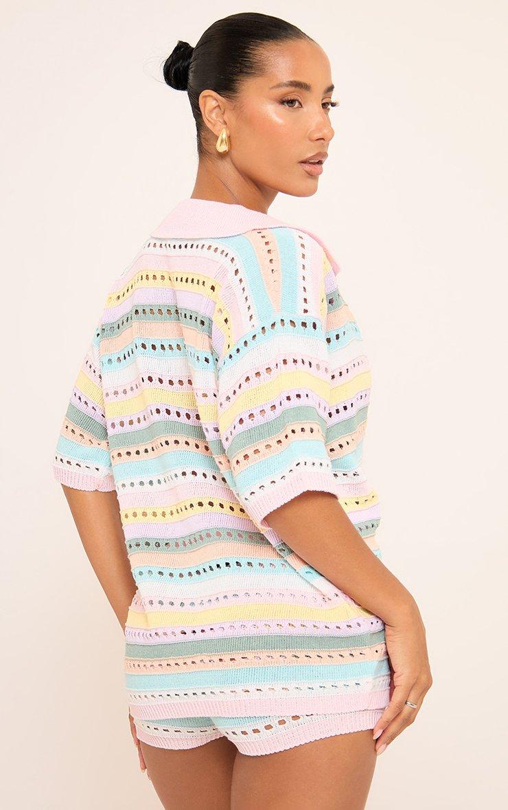 45814 Short Sleeve Shirt In Stripe Crochet Knit In Multi