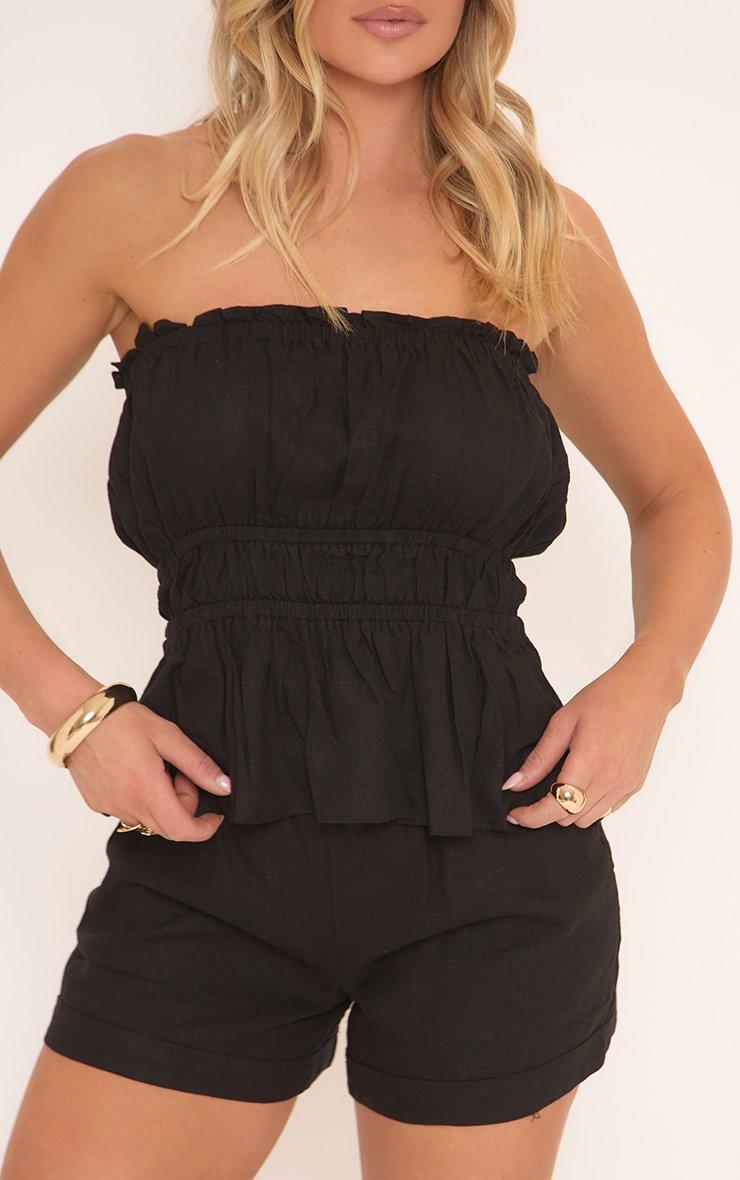 Mid Rise Loose Fit Drawstring Detail Shorts In Black