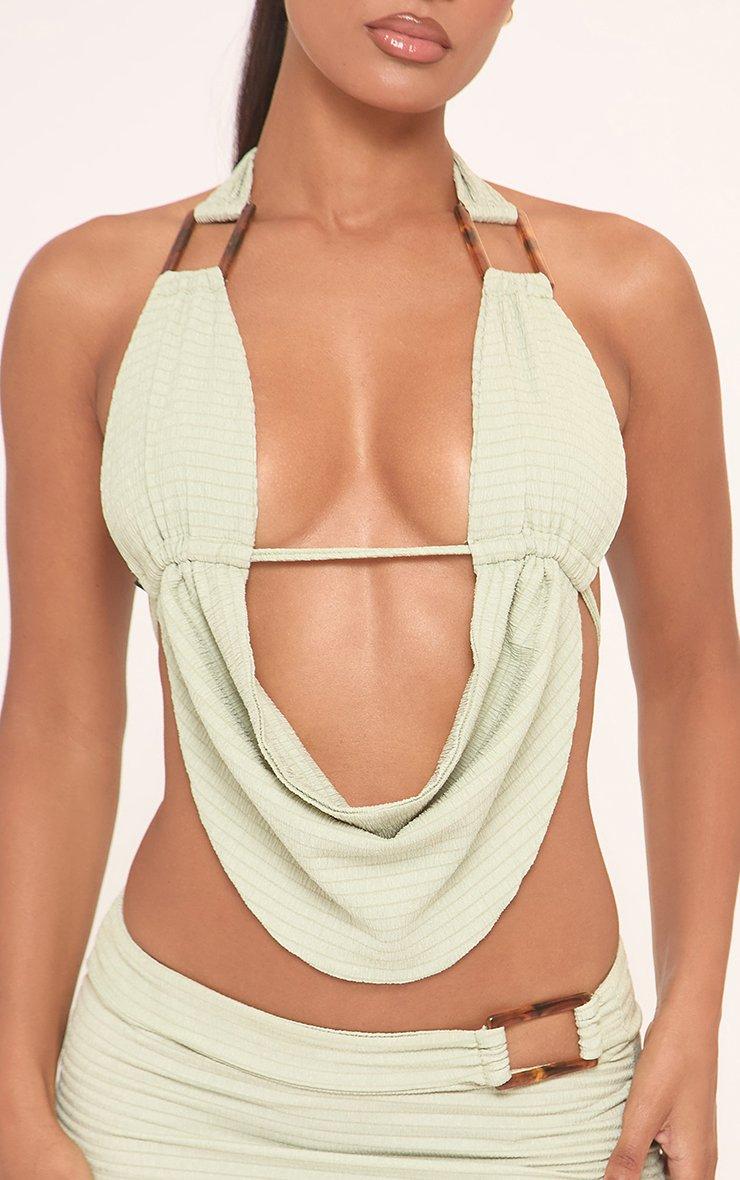 Halterneck Buckle Detail Cowl Front Top In Green Texture