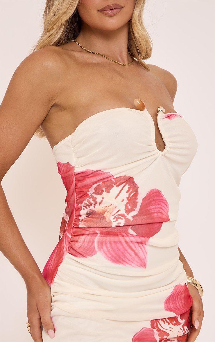 Bandeau Trim Detail Maxi Dress In Cream Floral Print