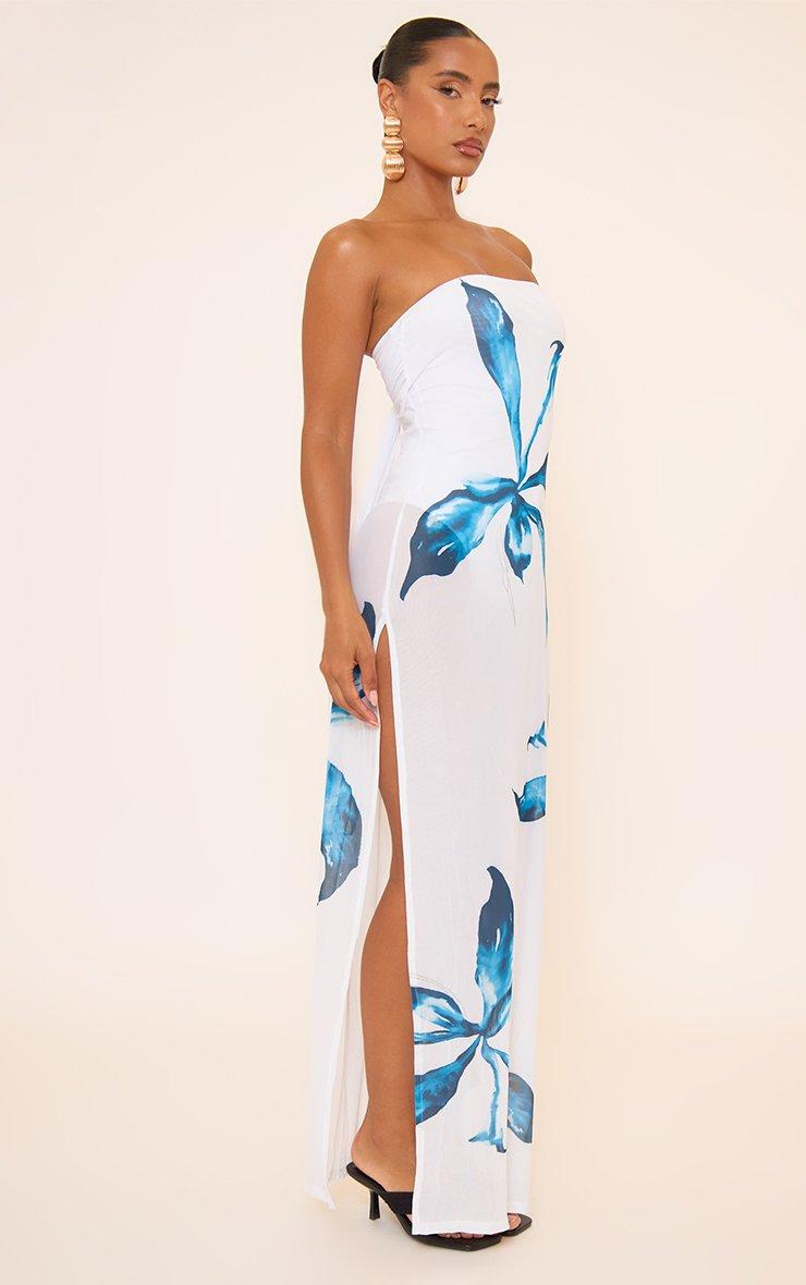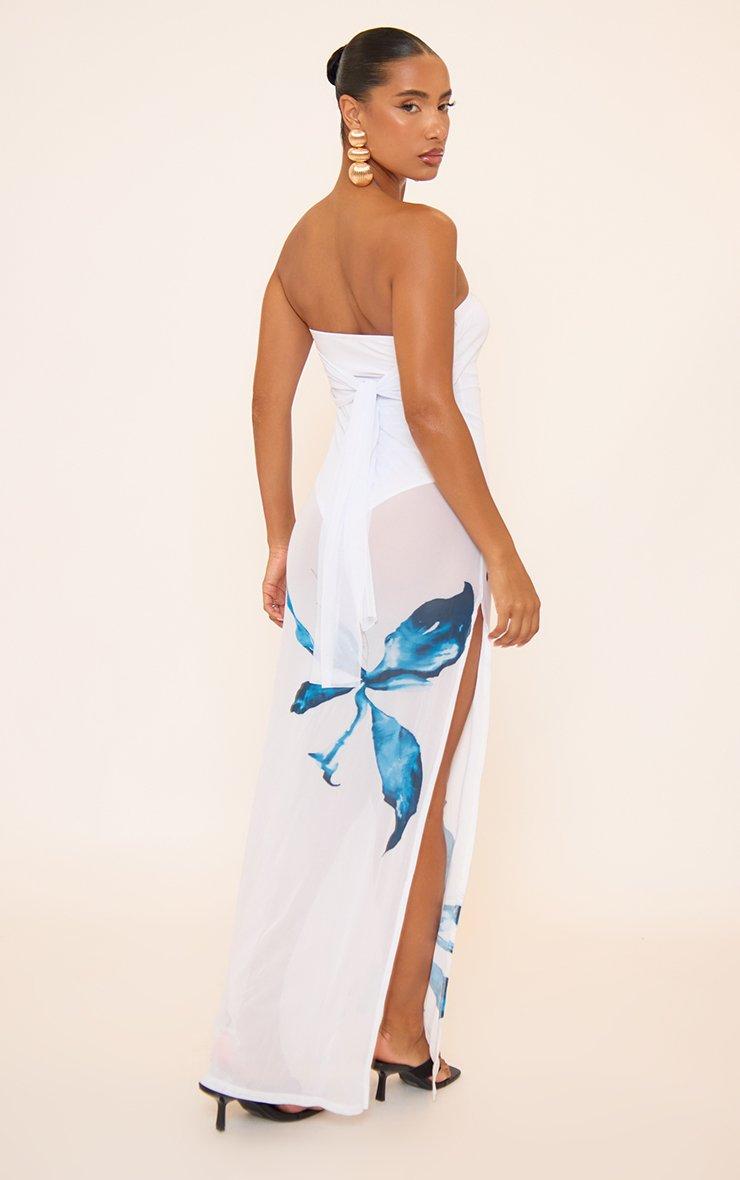Bandeau Bodysuit Lining Detail Maxi Dress In White Large Floral Print