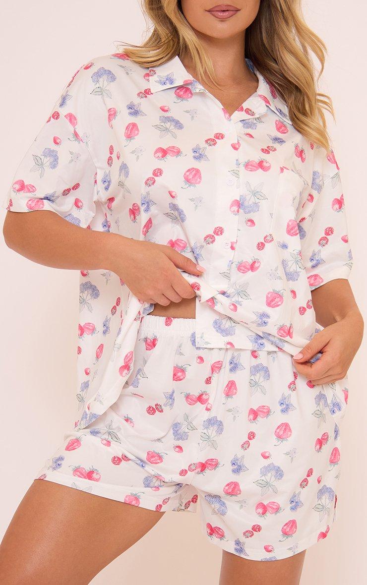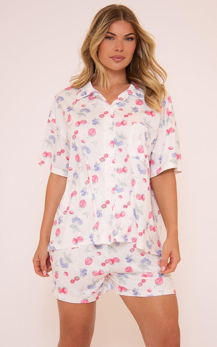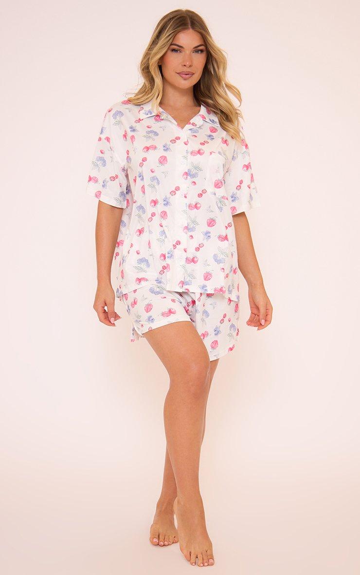 Short Sleeve Pyjama Set In White Fruit Print
