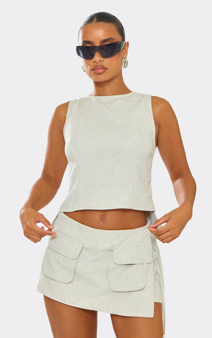 Sleeveless Tie Back Detail Fitted Top In Stone