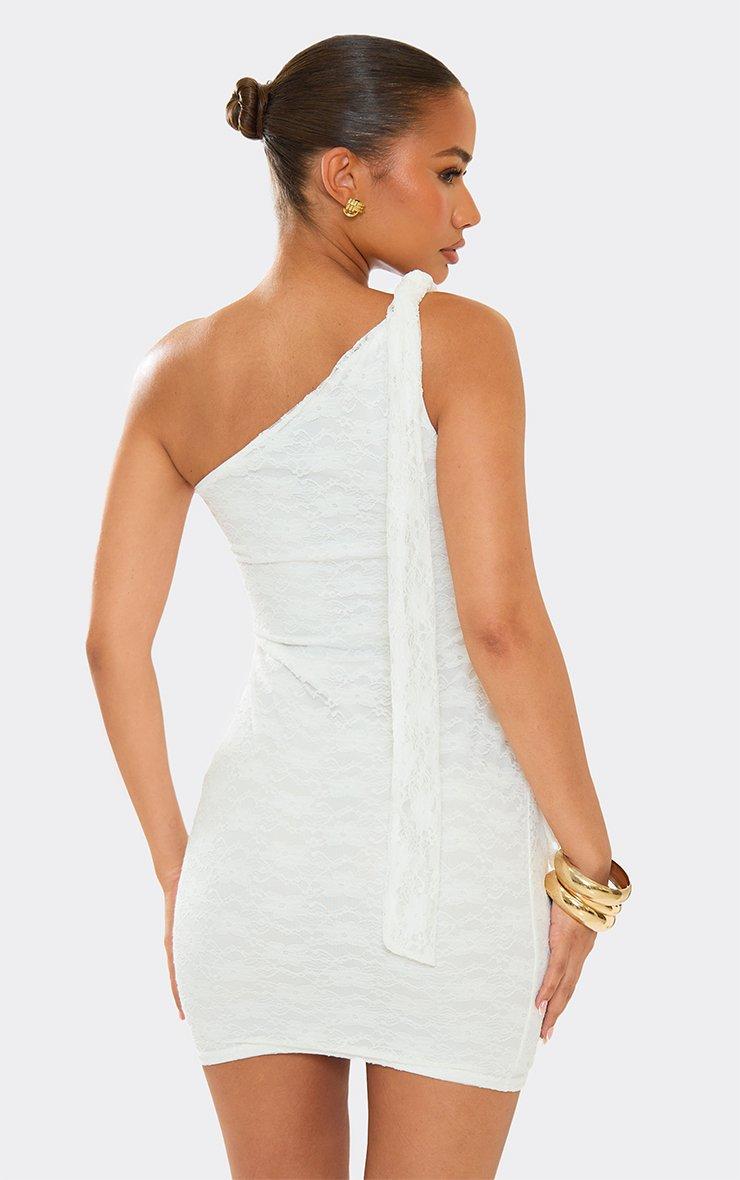 One Shoulder Drape Detail Mini Dress In White Lace