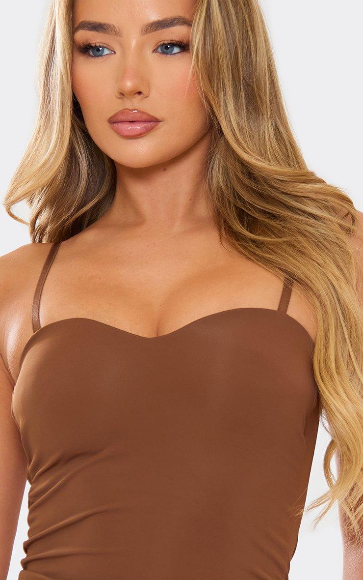 Strappy Sculpting Bust Detail Mini Dress In Chocolate Brown