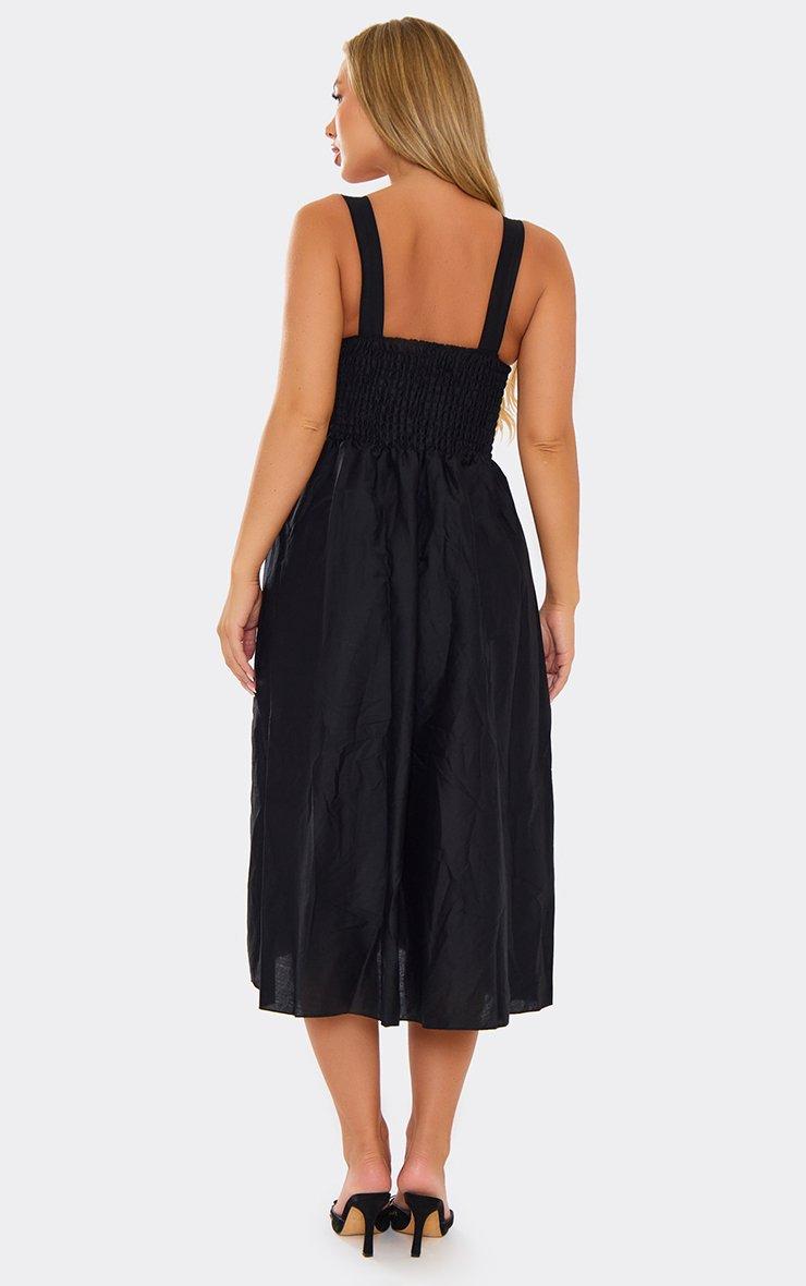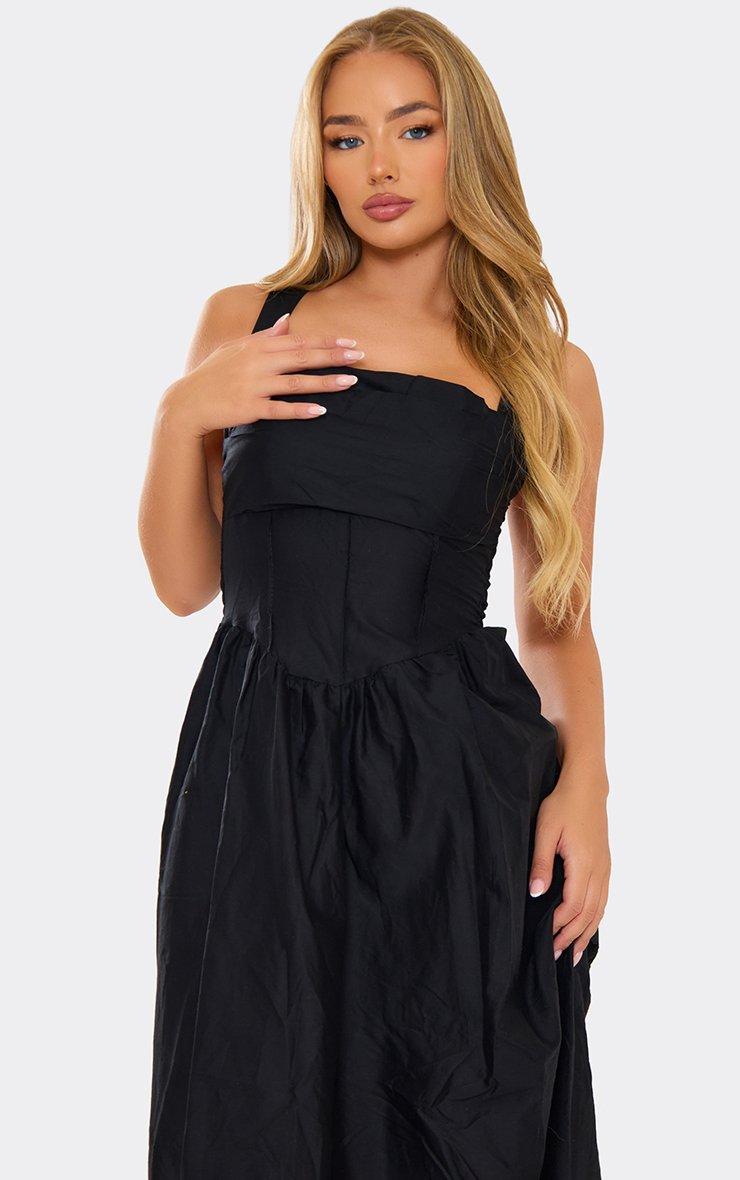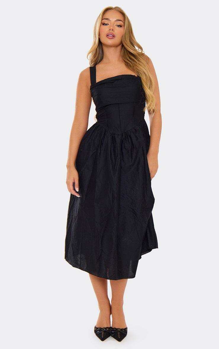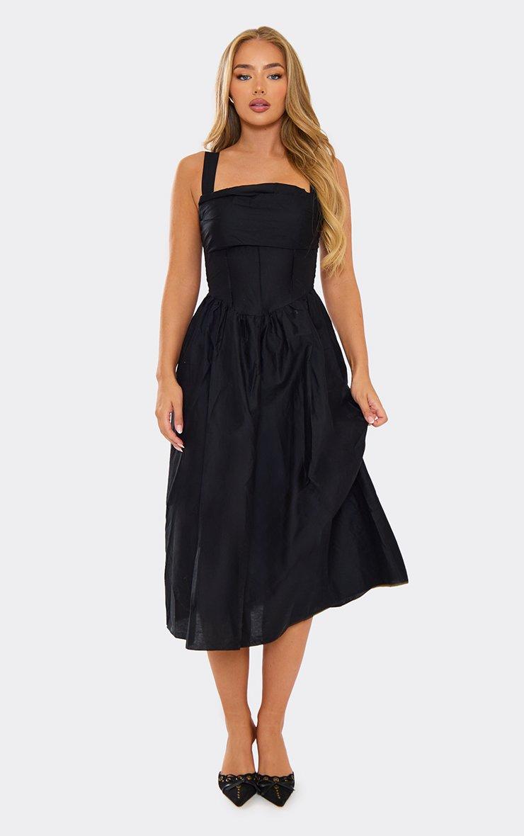 Square Neck Ruched Bust Detail Midi Dress In Black