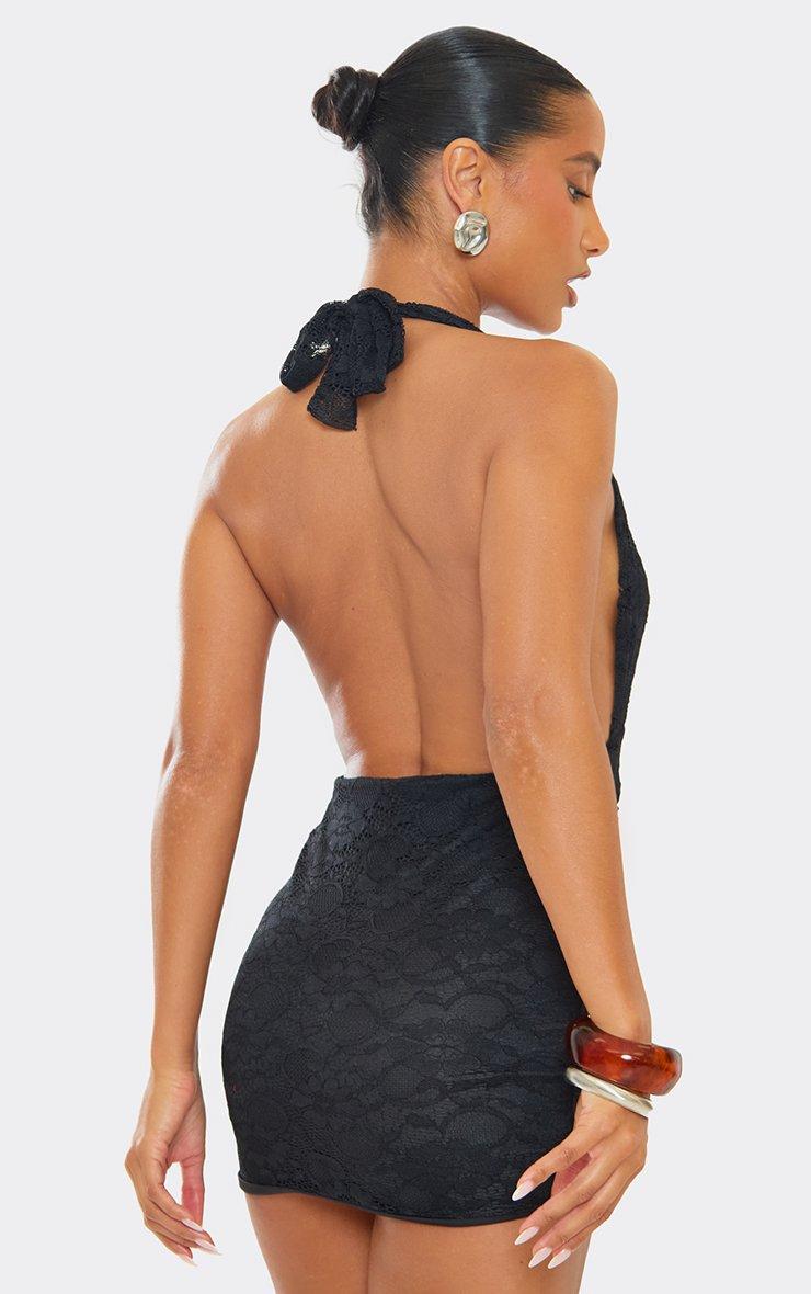 Extreme Plunge Halterneck Backless Detail Mini Dress In Black