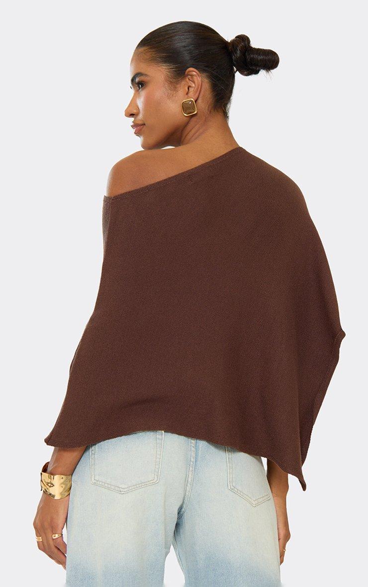 Asymmetric Neck Cape Top In Chocolate Brown Knit