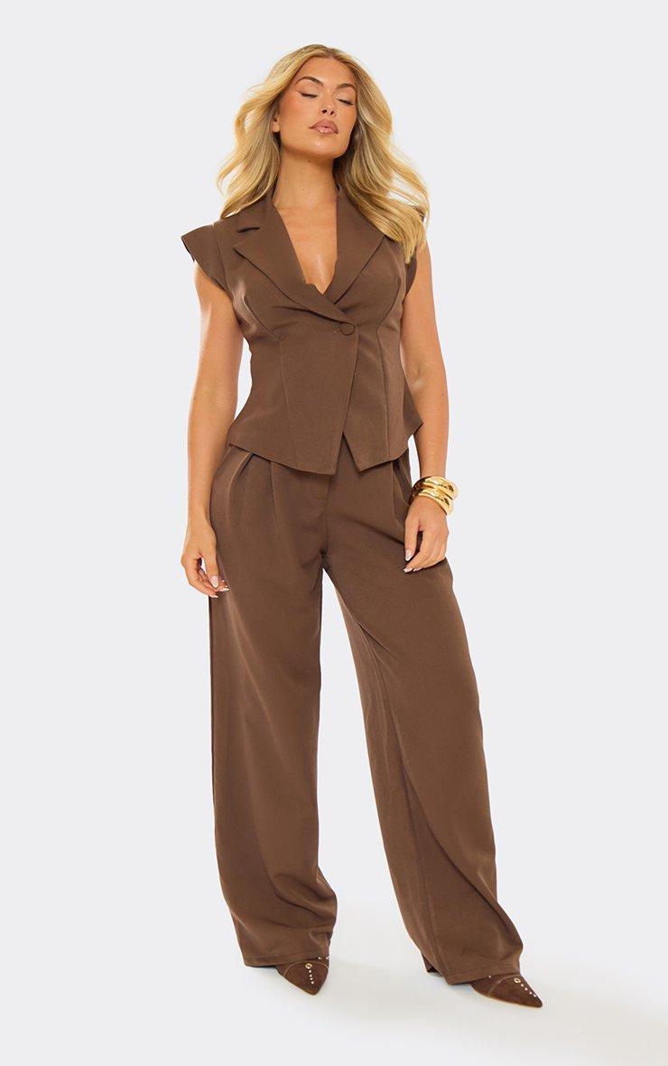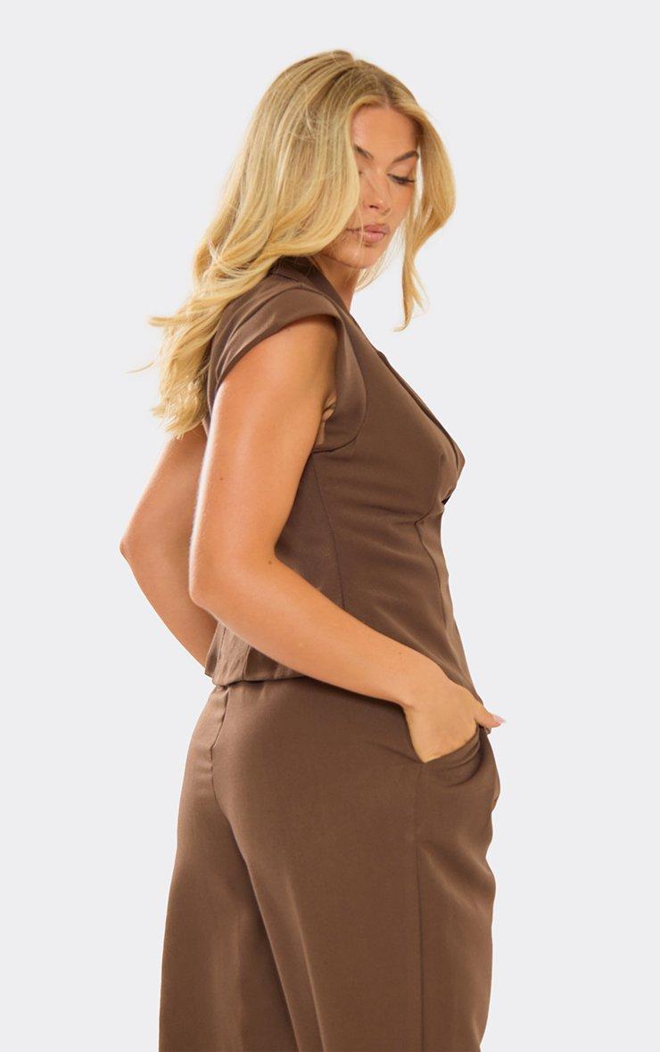 Sleeveless Asymmetric Cinched Waist Detail Waistcoat In Brown