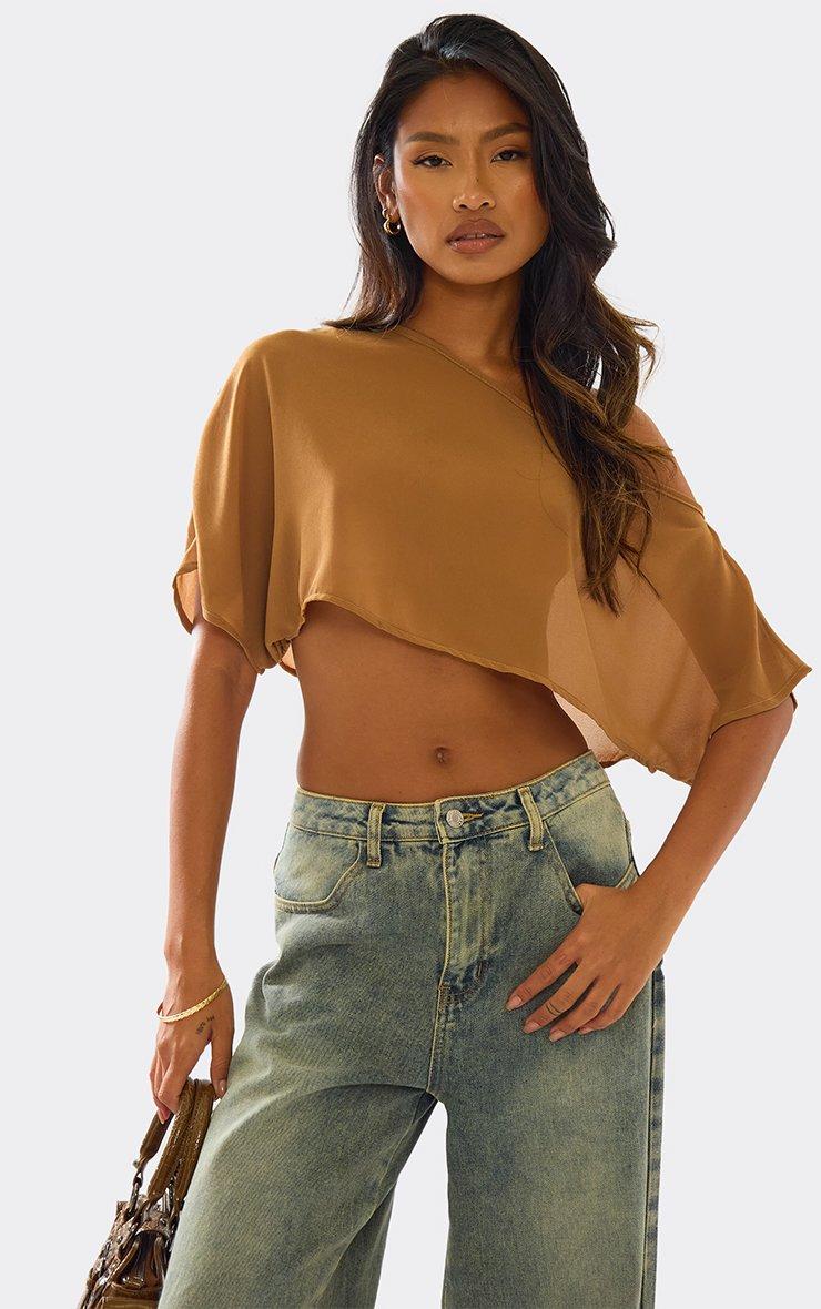 Weekend chic, doll. Featuring a brown chiffon material with slash neck and cape detailing, this top is giving bold, flowing vibes for statement day-to-night looks.