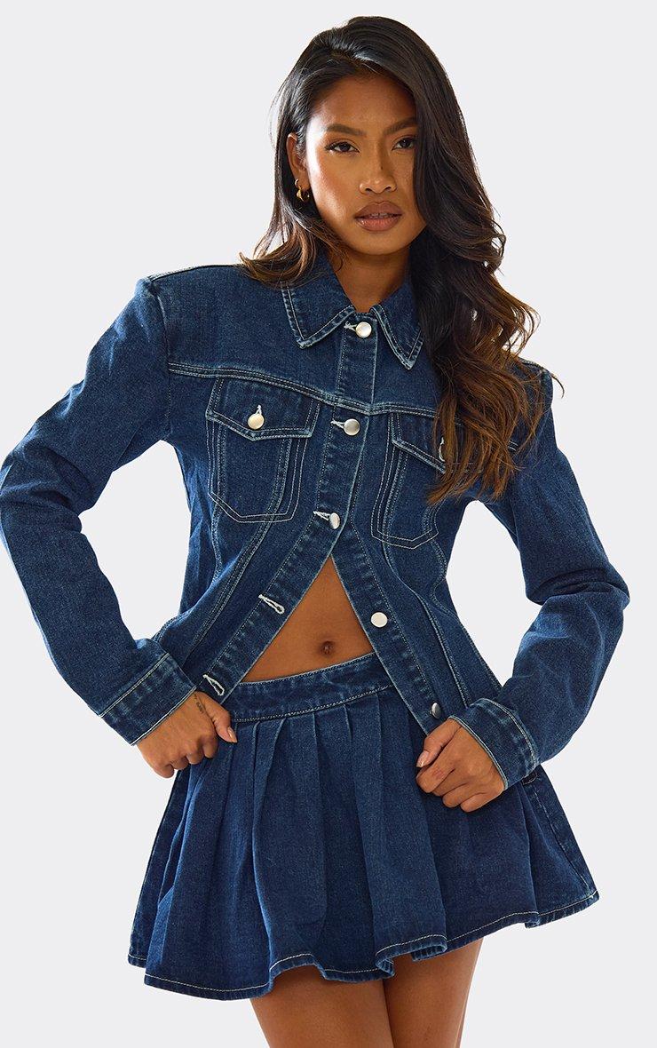 Upgrade your casual wardrobe with our denim cinched waist jacket. Made from trusty denim fabric, this piece combines structure and style with a tailored fit and cinched waist that flatters. The high collar and seam detailing add a sophisticated touch, while practical pocket details keep it functional for everyday wear. The long sleeves and a versatile mid-blue hue make it perfect for layering over dresses , tees , or jumpers. Struggling with what to wear with a denim jacket? Whether paired with jeans for a denim-on-denim moment or styled with the matching denim skirt and boots , this denim cinched waist jacket is a cute addition to any casual outfit. Key Features Mid Blue Colour Denim Fabric Cinched Waist Pocket Detail Seam Detail High Collar Tailored Fit Long Sleeve