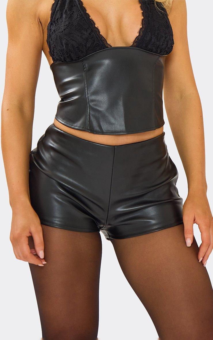 Perfect for nights out or statement street-style vibes. Featuring black faux leather material with mid-rise fit and booty short detailing for a bold, on-trend finish. Pair with a crop top and heels to complete the it-girl look.