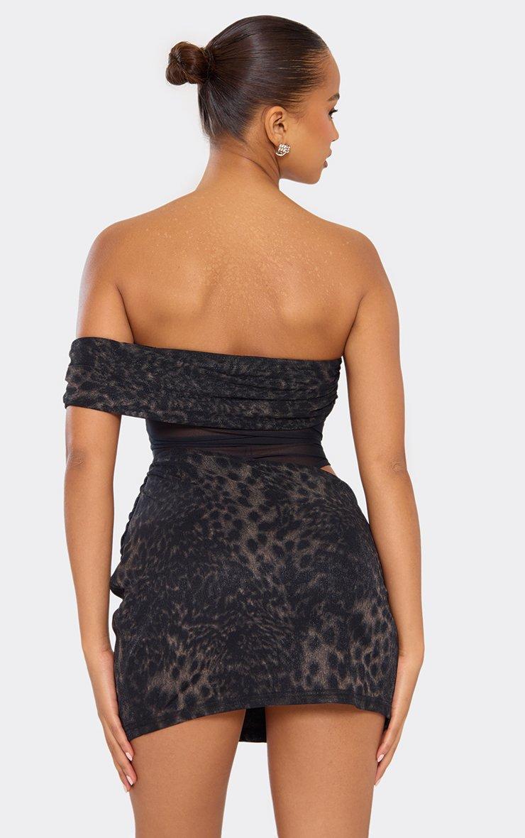 Bardot One Sleeve Mesh Panel Detail Mini Dress In Black Leopard Print