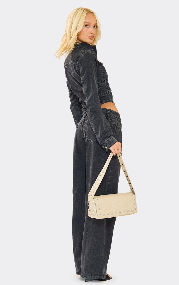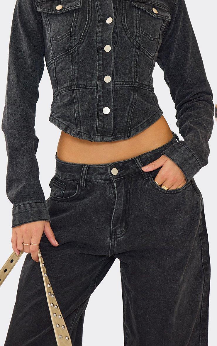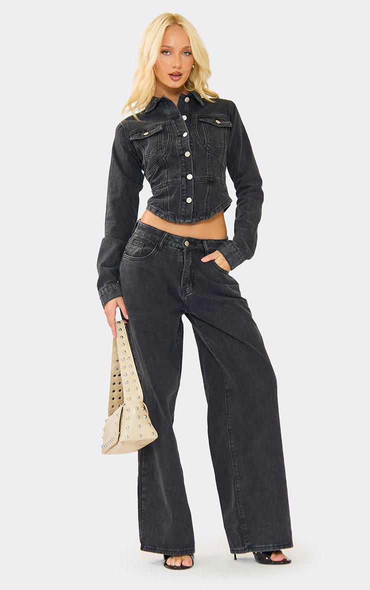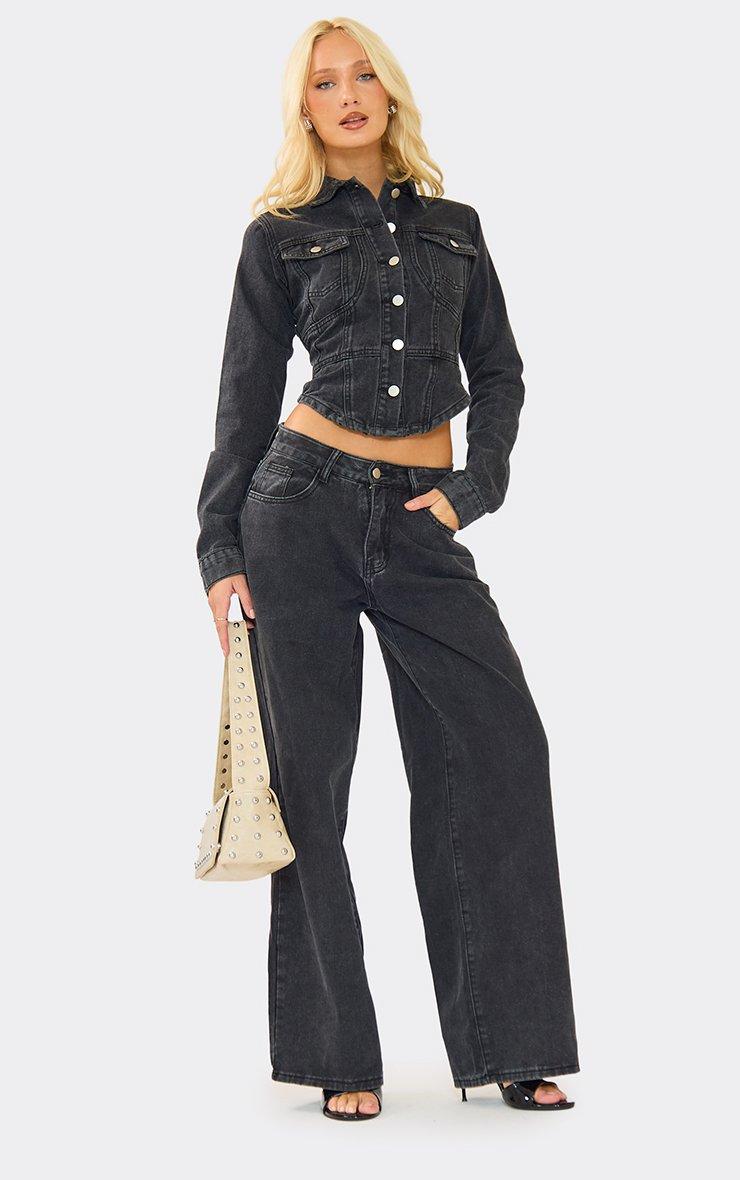 Perfect for off-duty or casual vibes, doll. Featuring black denim material with low-rise and wide leg detailing, these jeans add sleek, it-girl energy to any outfit. Style with a fitted top and trainers or heels for a boss-babe finish.