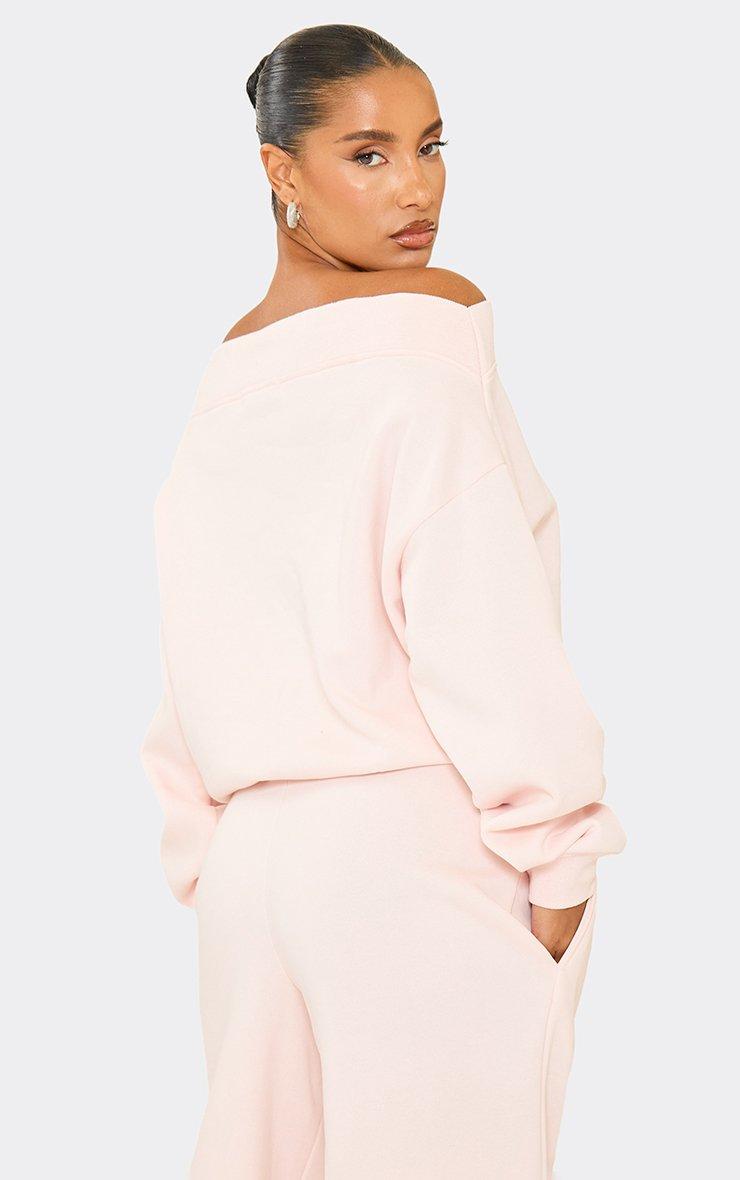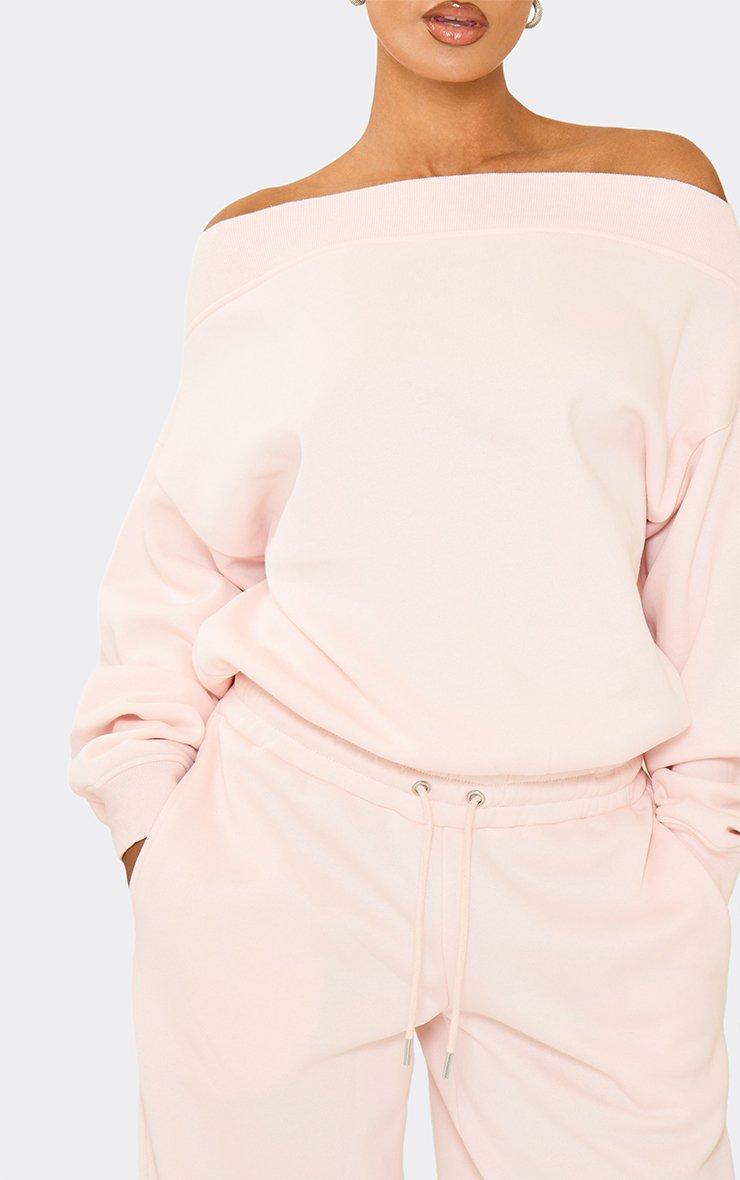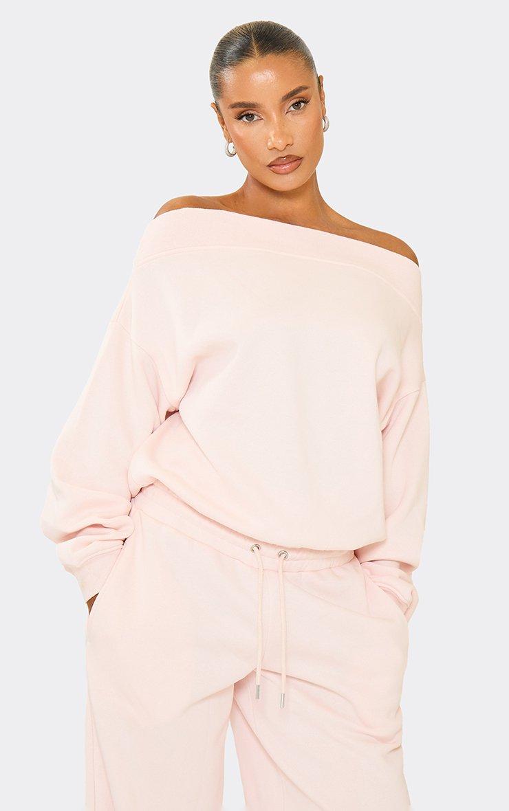 Perfect for cosy weekends or casual brunch vibes. Featuring baby pink material with off-the-shoulder styling and oversized detailing for a relaxed, on-trend finish. Pair with skinny jeans and trainers for effortless it-girl energy.