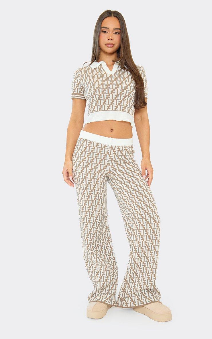 Street-style vibes, nailed. Featuring stone knit material with collared short sleeve and logo pattern detailing, this top adds relaxed, on-trend energy. Pair with high-waist jeans or tailored shorts and trainers for effortless off-duty style.