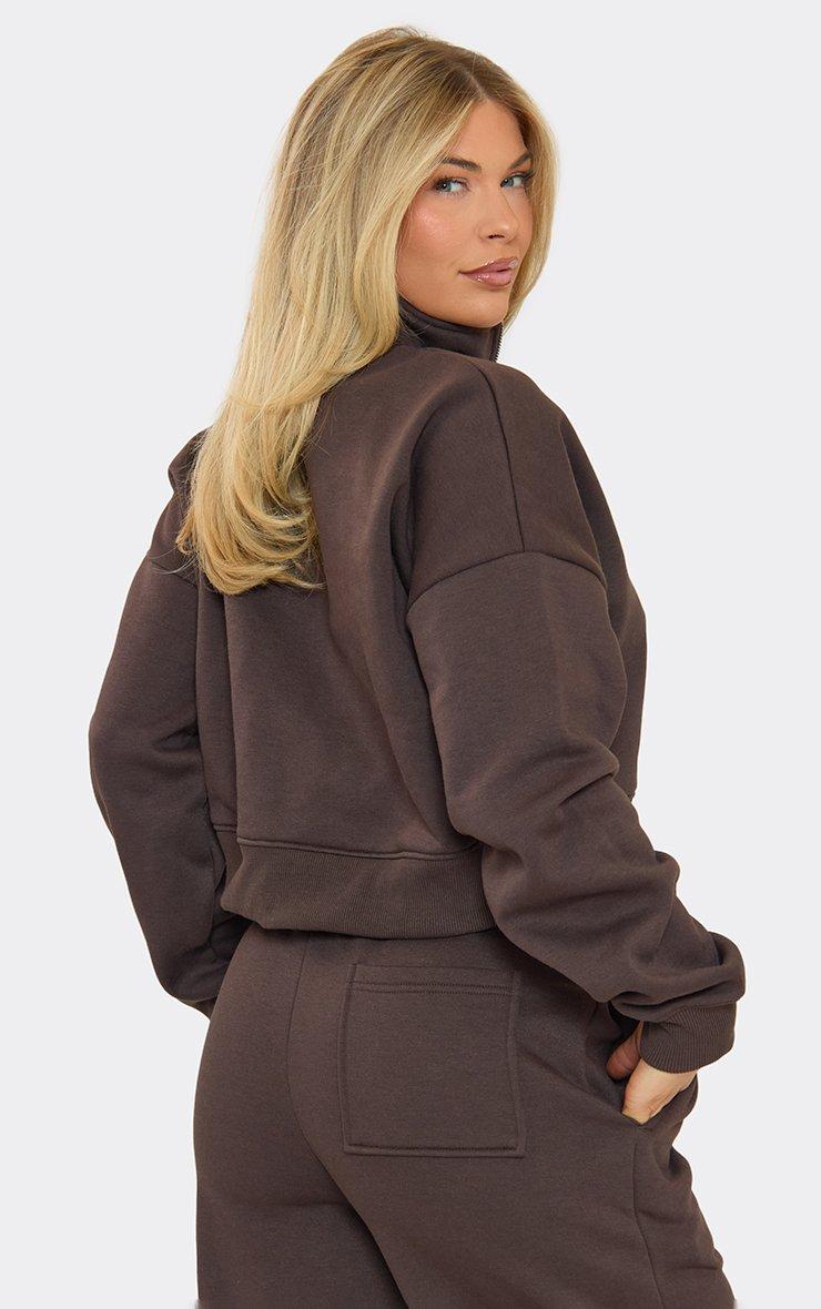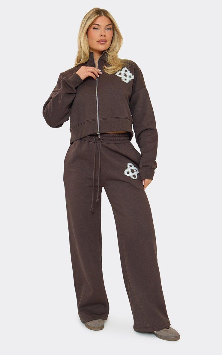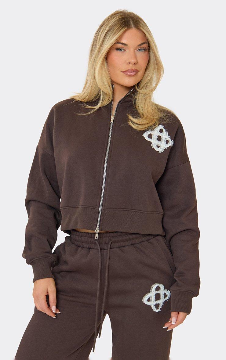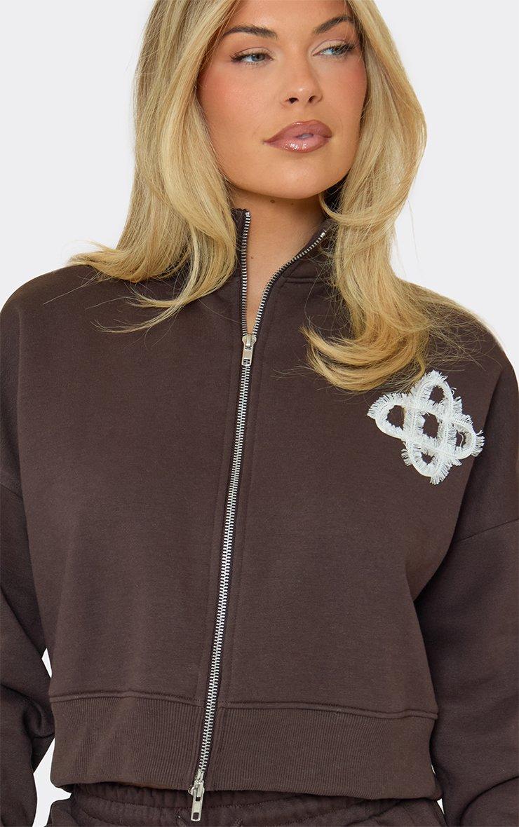High Neck Swirl Graphic Detail Zip Up Sweatshirt In Chocolate Brown