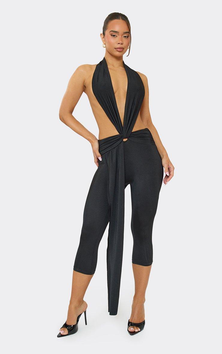 Slinky stretch fabric in black with extreme cut-out and drape detailing for a bold, after-dark vibe. This chic jumpsuit brings main-character energy—style with heels and statement jewellery for nights that call for drama, doll.