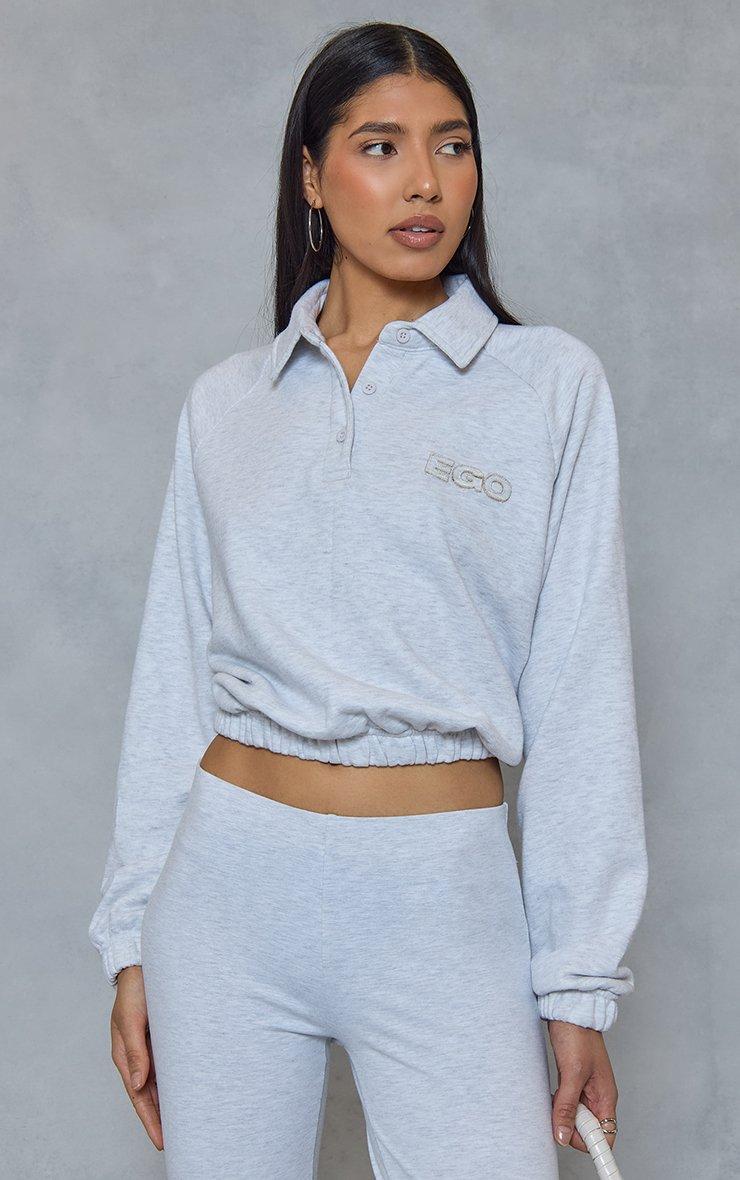 Level up your off-duty vibe, doll. Featuring grey marl material with polo graphic detailing and an oversized fit, this sweatshirt is a total mood. Style with cycle shorts and fresh trainers for a high-end, it-girl aesthetic.