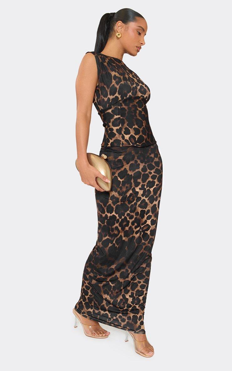 Make a serious statement at your next evening out, doll. Featuring a brown leopard print material with corset detailing and a sleeveless design, this maxi dress is a total main character mood. Style with black strappy heels and gold accessories for a high-end, it-girl aesthetic that’s giving everything.