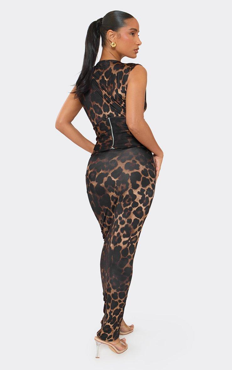 Sleeveless Corset Detail Maxi Dress In Brown Leopard Print