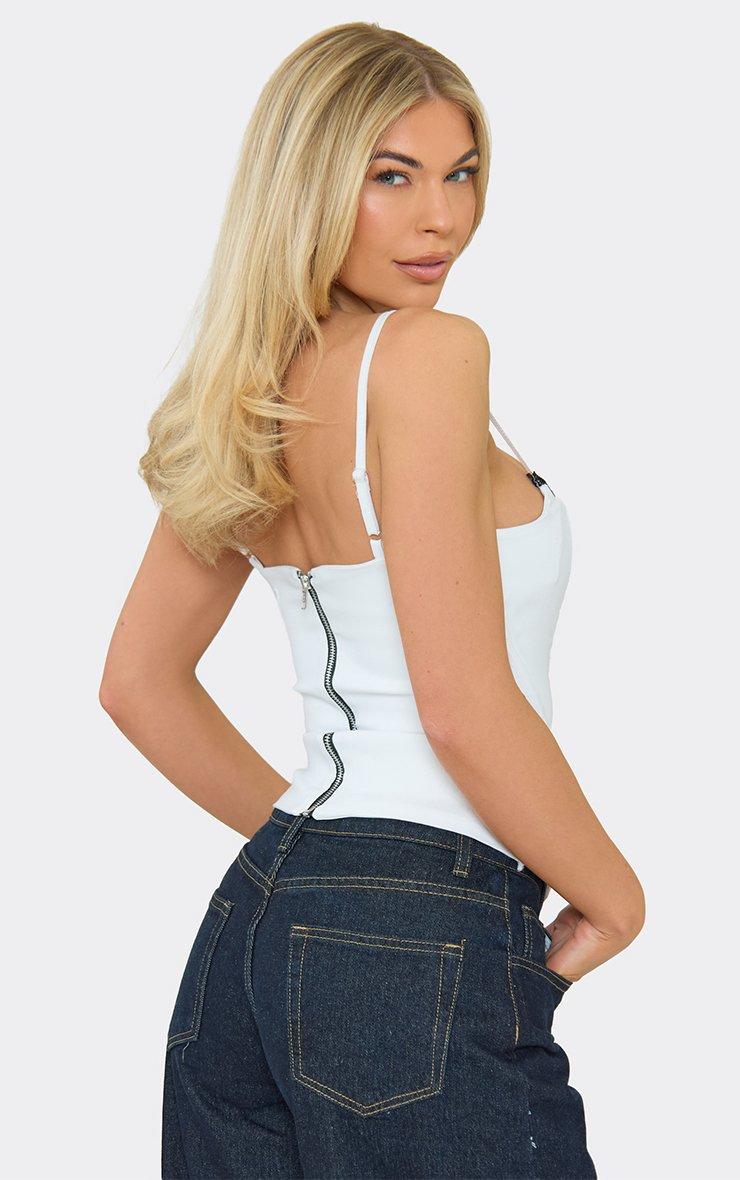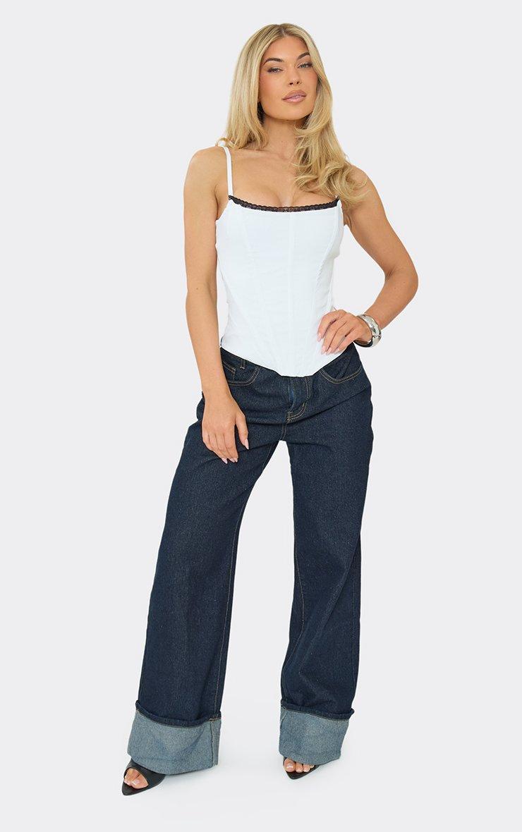 Lock in your next main-character-energy fit for those upcoming drinks with the girls. Featuring white mesh material with lace trim detailing, this curved hem corset is a total must-have for any it-girl wardrobe. Style with baggy jeans and pointed heels for a serious boss-babe finish.