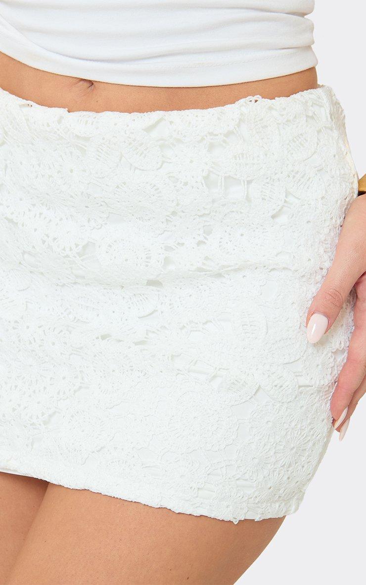Mid Rise Crochet Mini Skirt In White