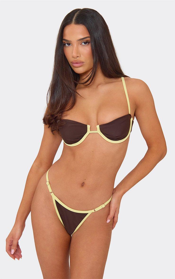 Contrast Strap Underwired Bikini Set In Chocolate Brown