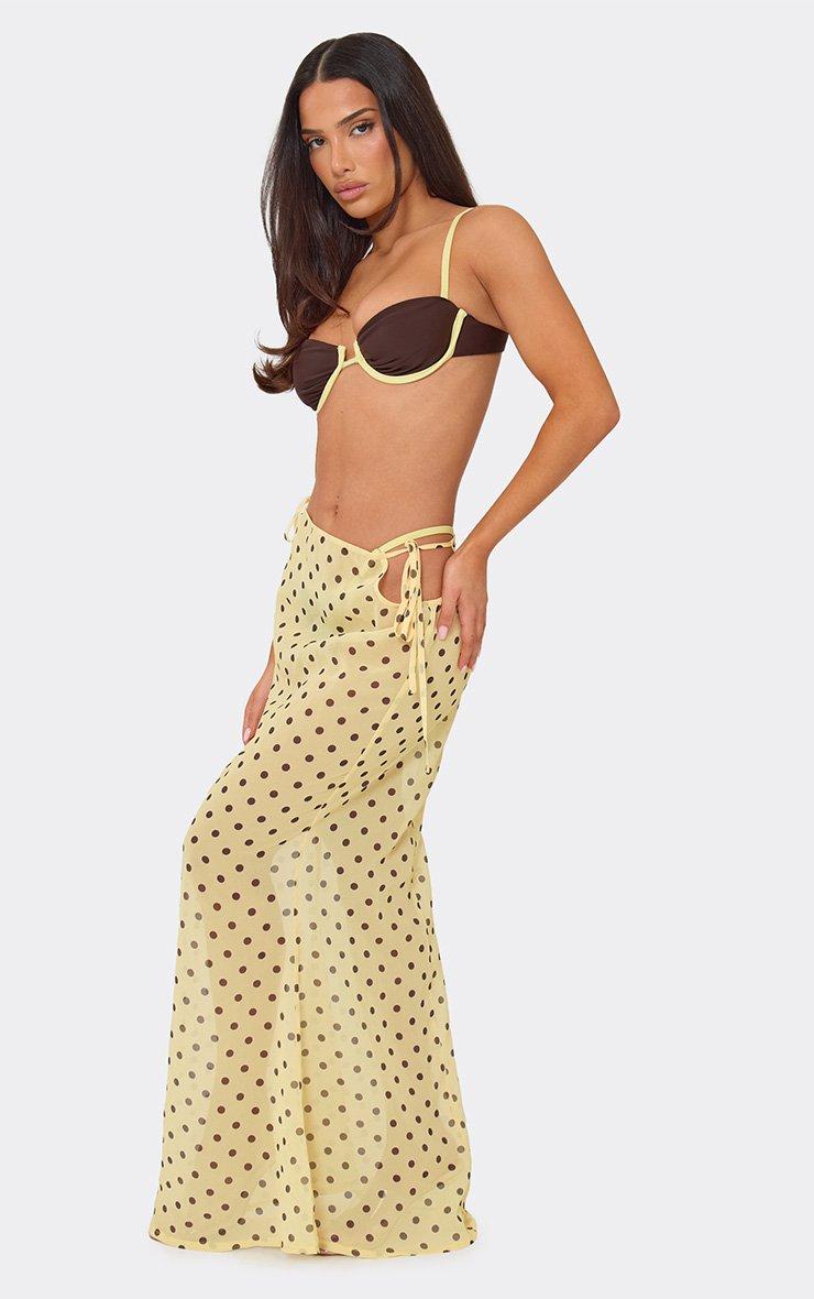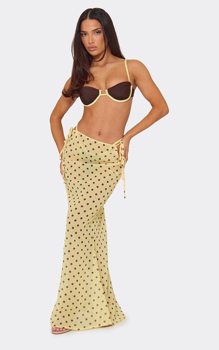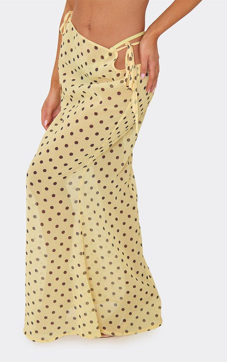 Low Waist Tie Side Fishtail Beach Maxi Skirt In Lemon Polka Dot