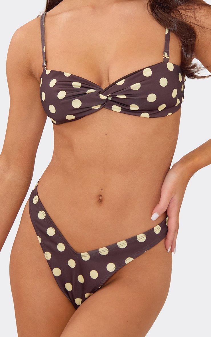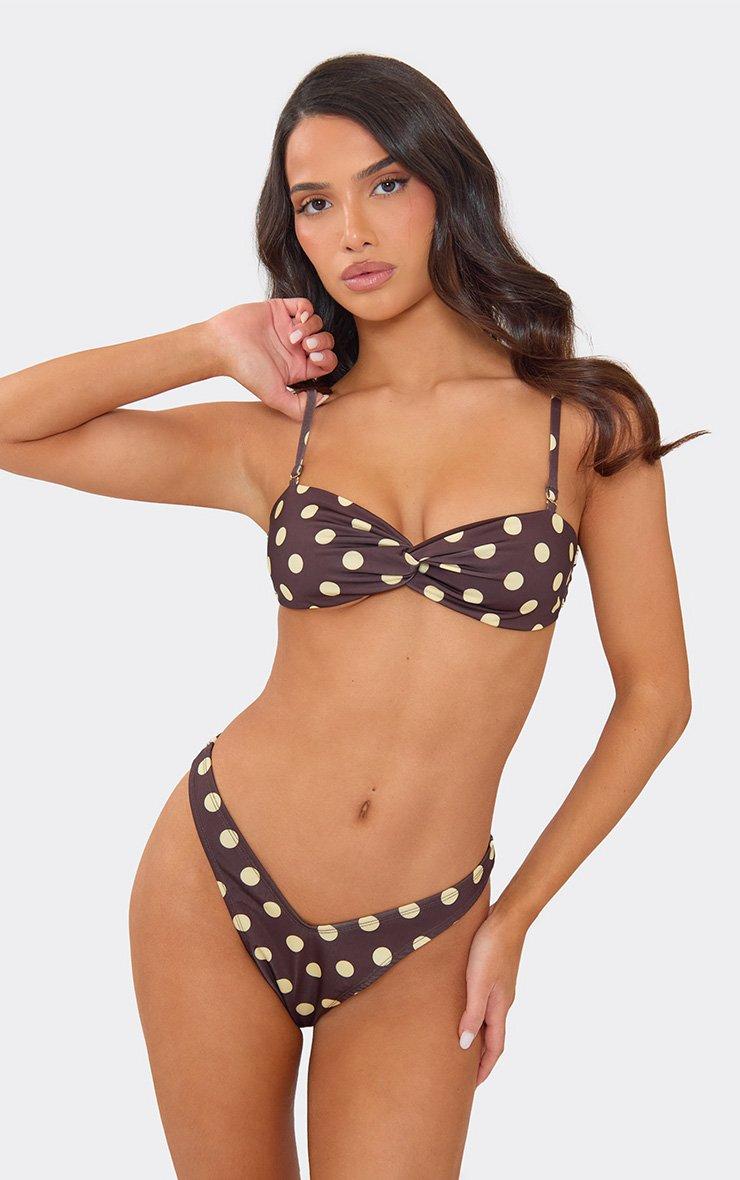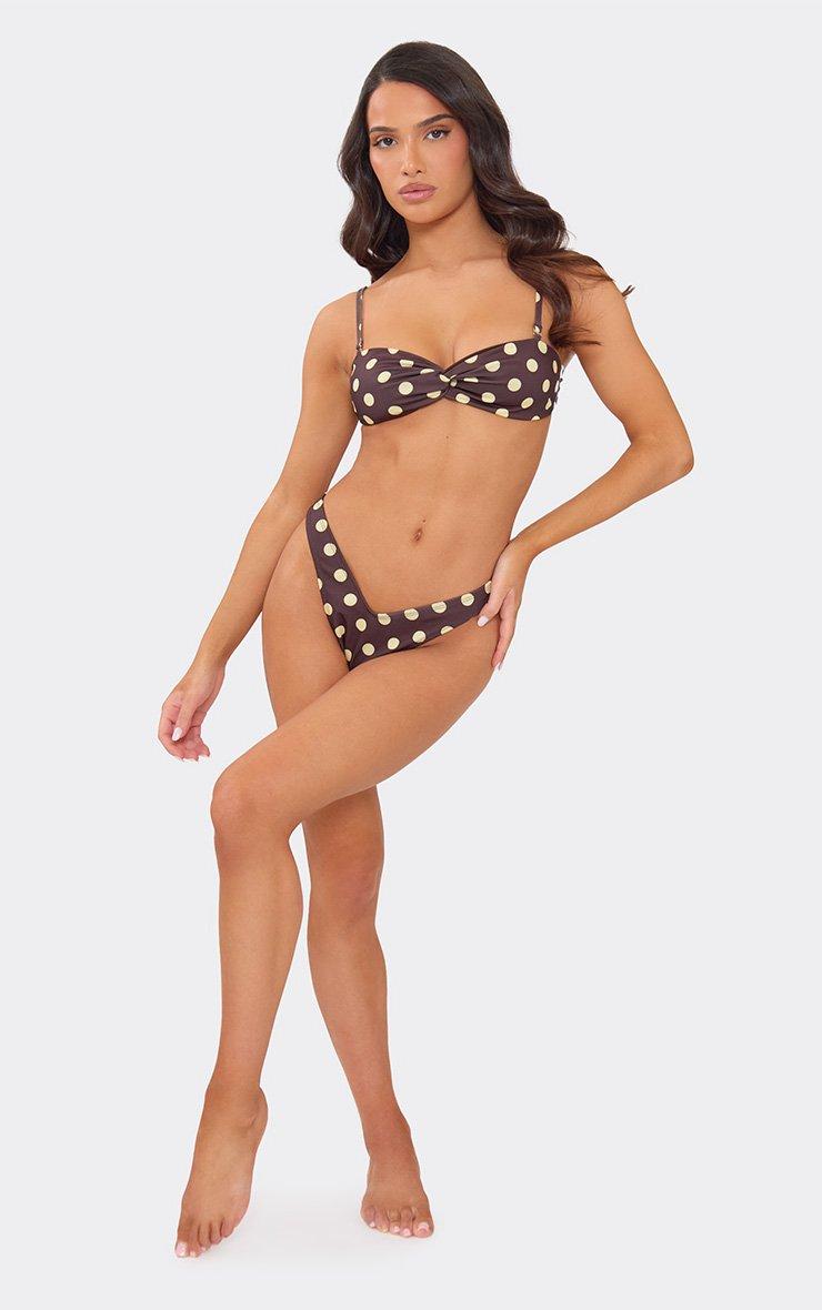 Twist Front Boomerang Bikini Set In Chocolate Brown Polka Dot
