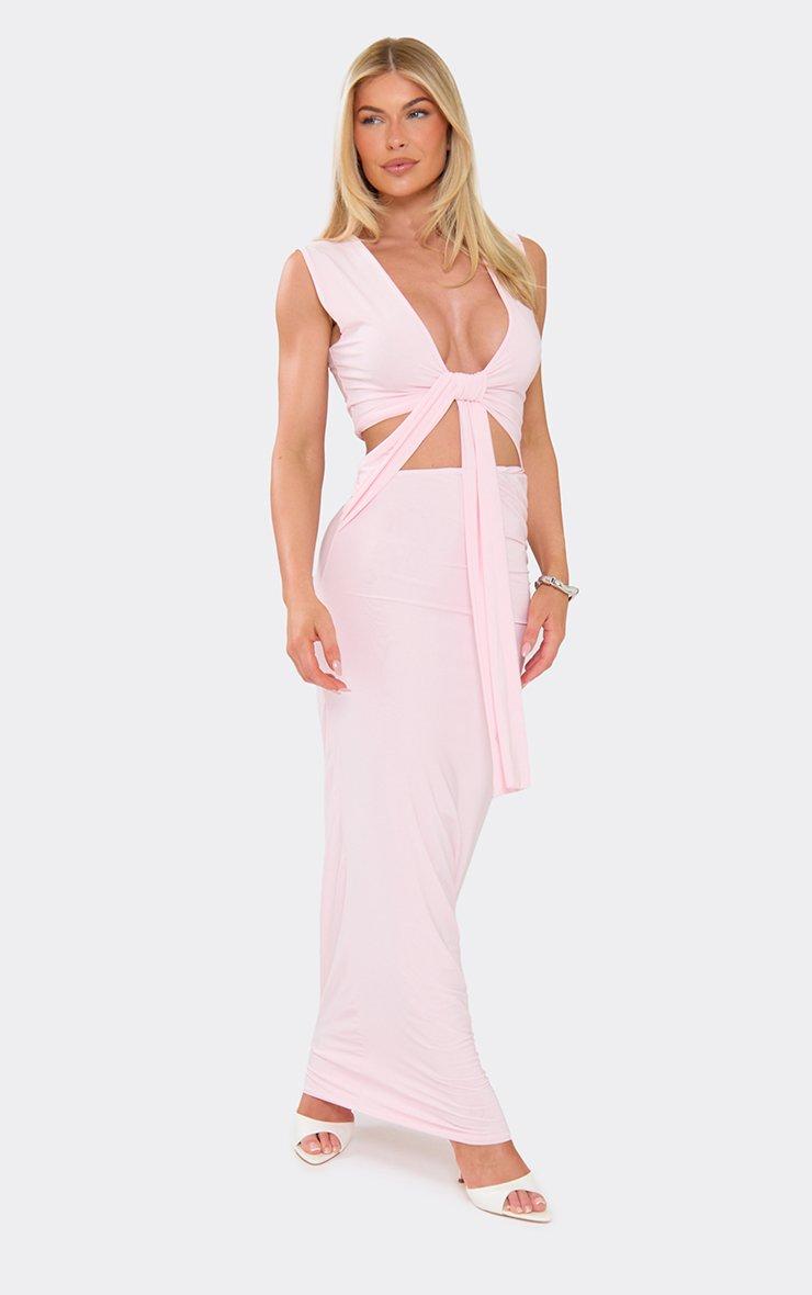Plunge Front Cut Out Drape Detail Maxi Dress In Baby Pink