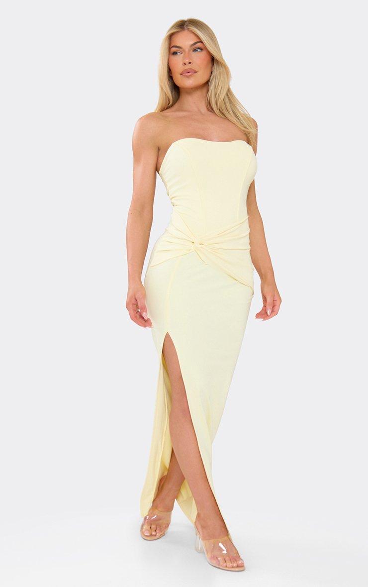 Bandeau Wrap Front Side Split Corset Maxi Dress In Yellow