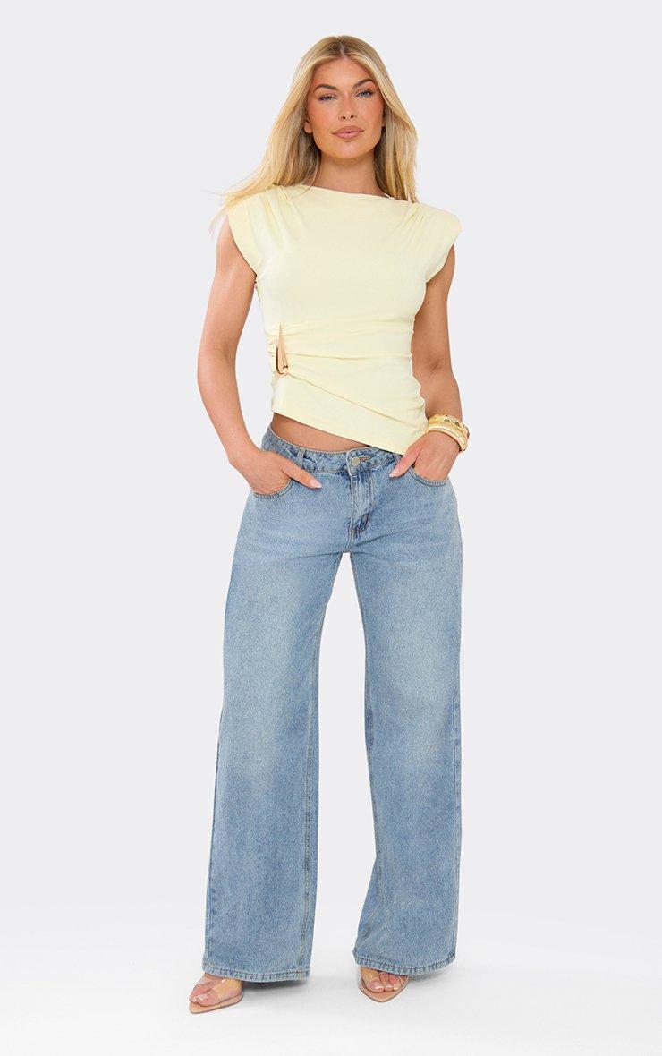 Shoulder Pad Ruched Trim Detail Top In Lemon