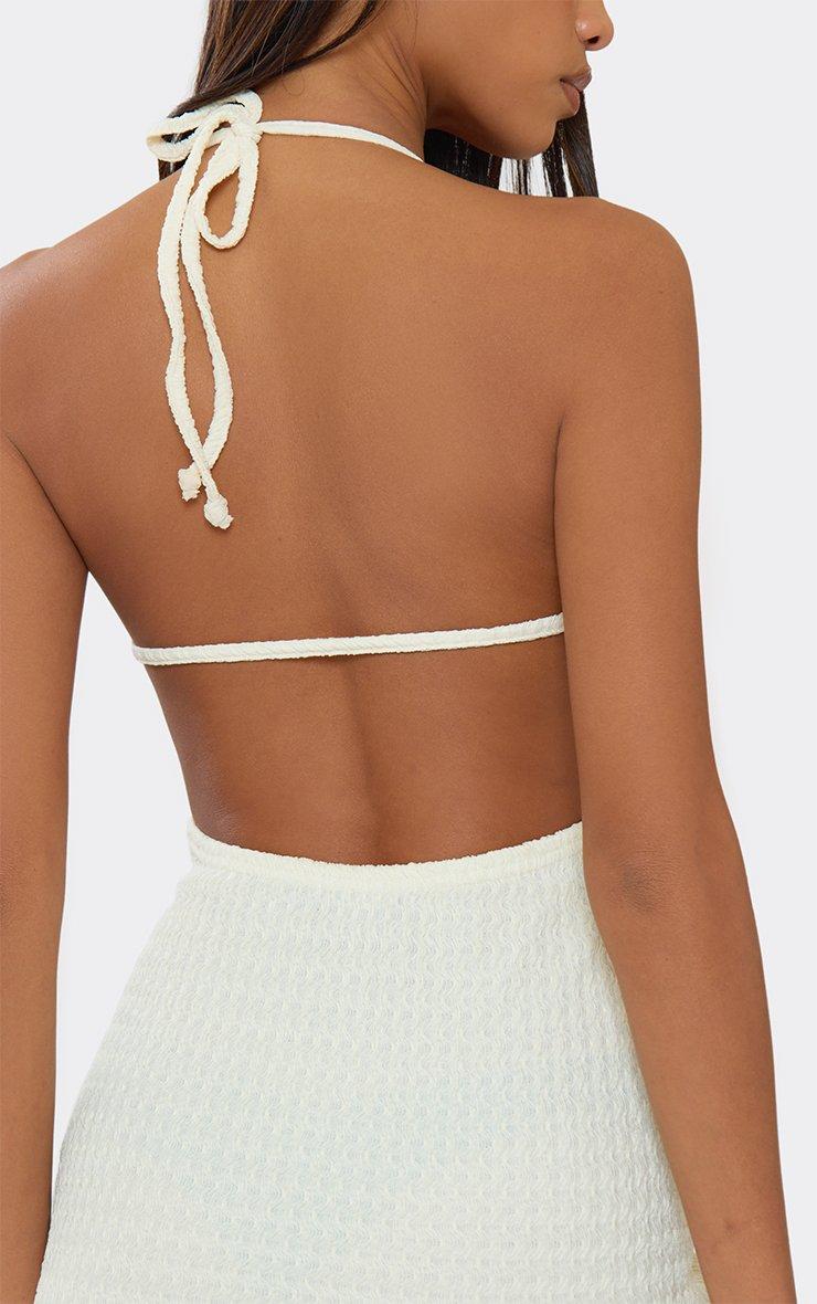 Halterneck Strappy Back Side Split Maxi Dress In Cream Textured Sheer