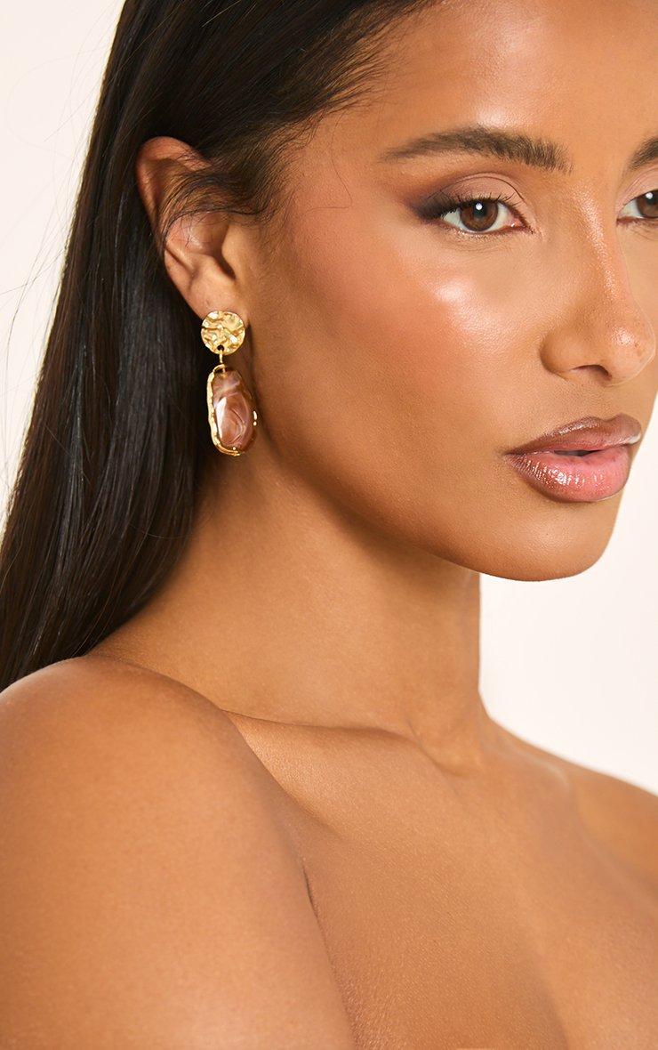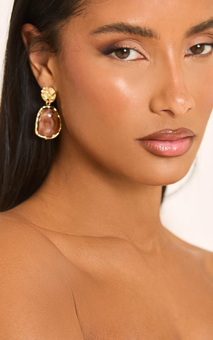 Drop Stud Earring In Gold And Brown Resin
