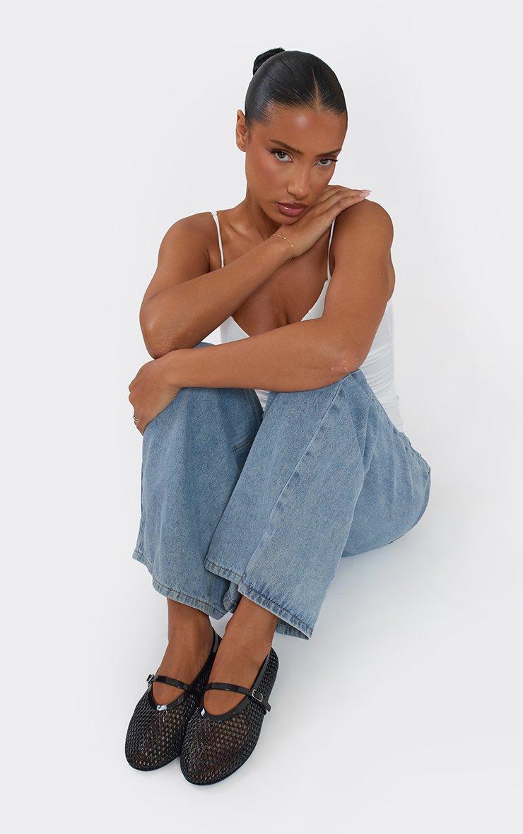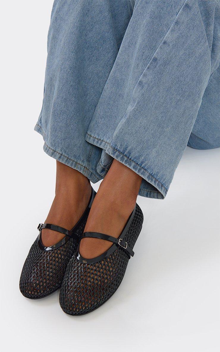 Level up your street style with these must-have flats. Featuring black rubber material with buckle strap and ballet pump detailing. Style with baggy jeans and a racer vest for the ultimate off-duty vibe.