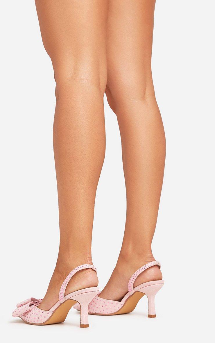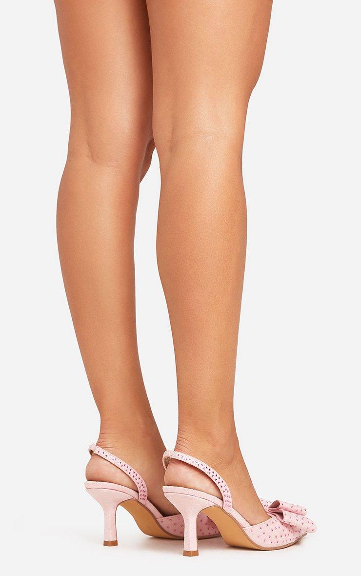 Get ready for date night, doll! Featuring pink faux suede material with stunning diamante bow detailing, these pointed toe slingbacks add a touch of glam to any outfit. Step out in style!