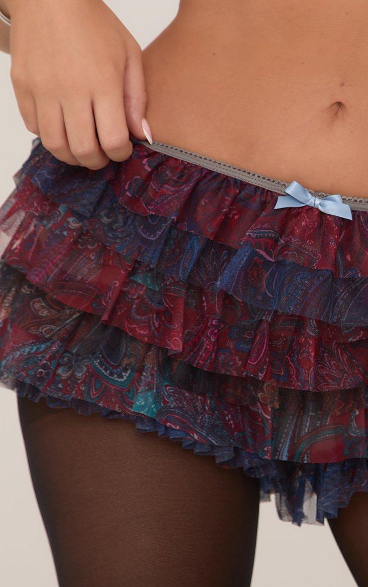 Low Rise Frilly Layered Micro Shorts In Multi Paisley Print Mesh