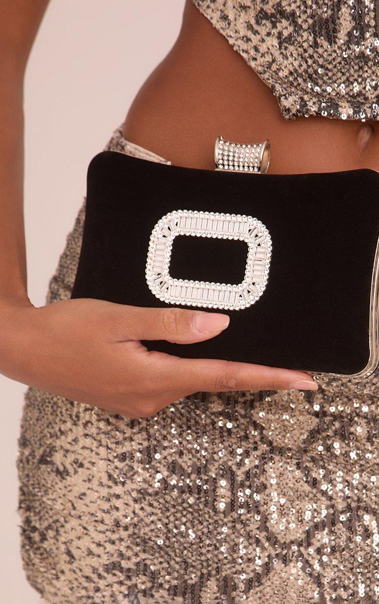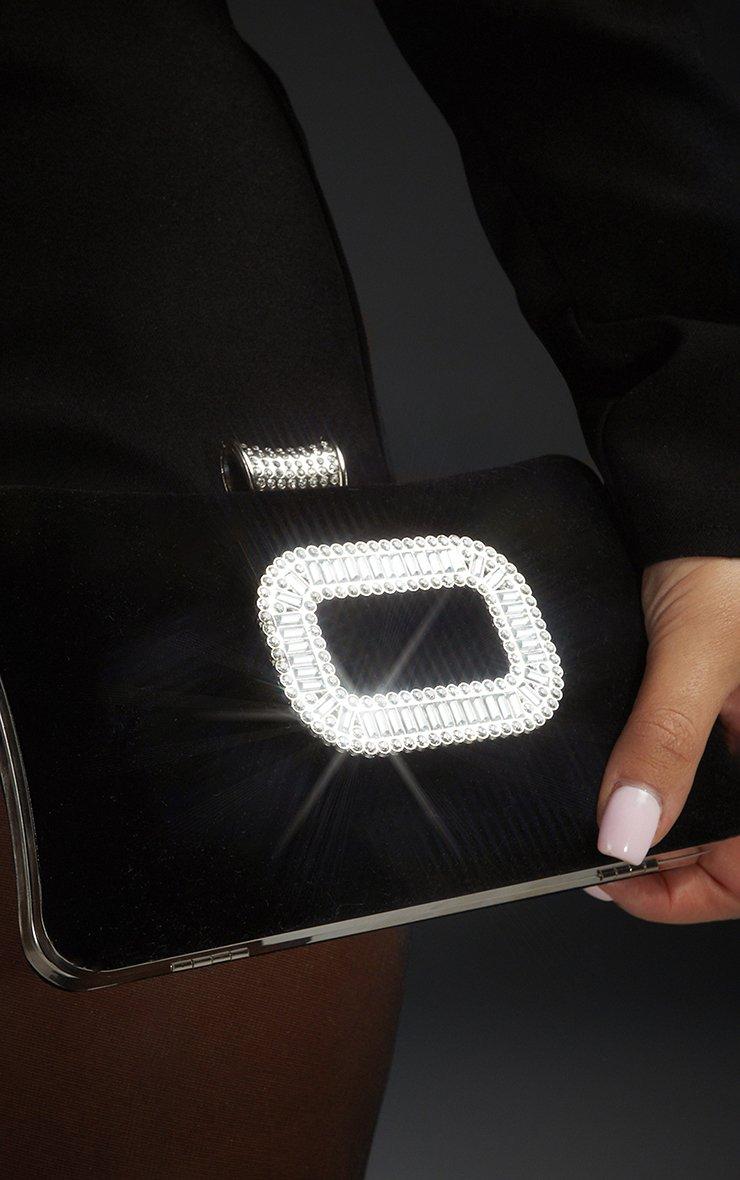 Add serious sparkle with the Diamante Draped Detail Rectangle Shaped Clutch Bag In Black Velvet! This classic rectangular clutch takes elegance to the next level with its eye-catching diamante draped detail. The rich black velvet adds a luxe touch, making this the perfect clutch bag for eye-catching style.