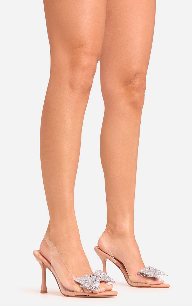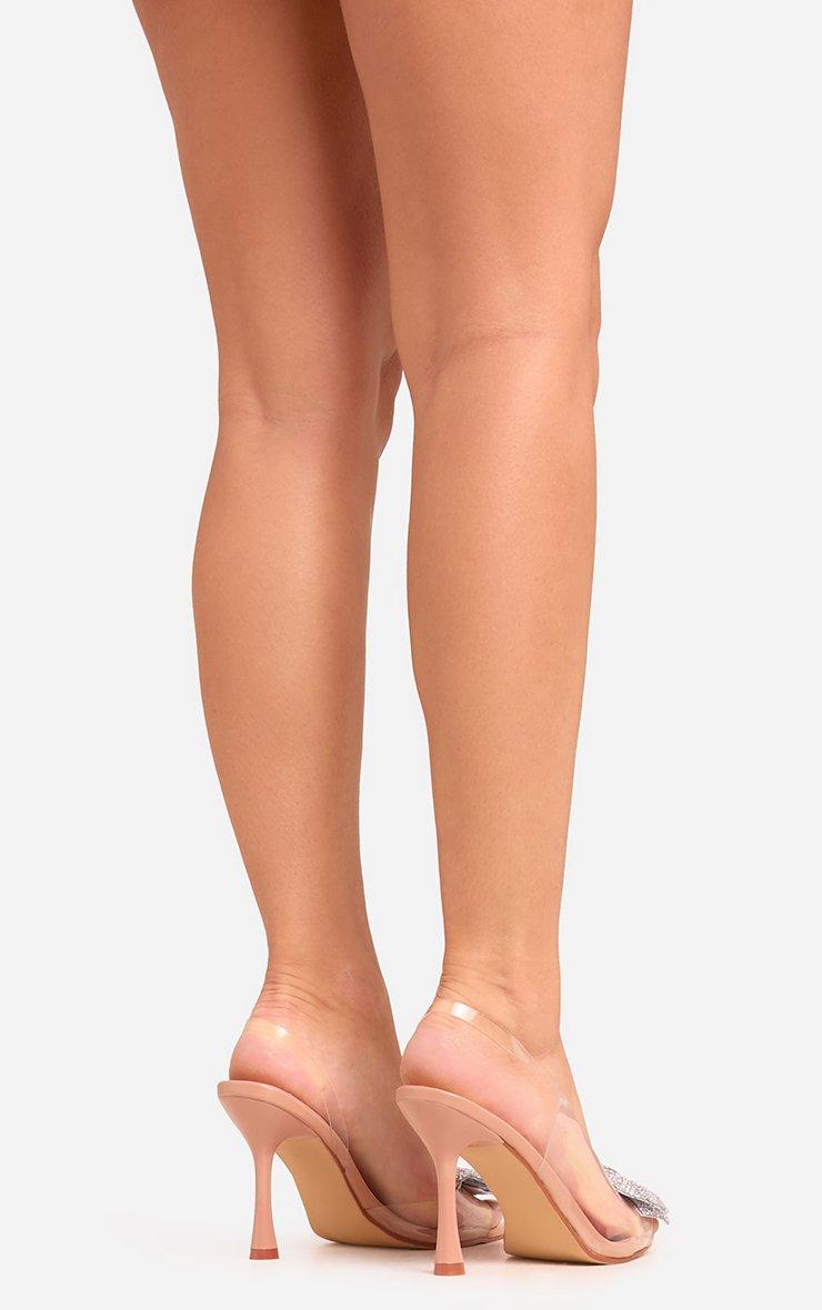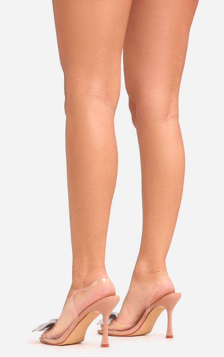 Decker Bow Detail Clear Perspex Pointed Toe Slingback Heel In Nude Faux Leather