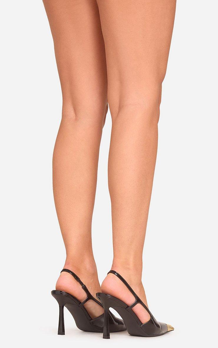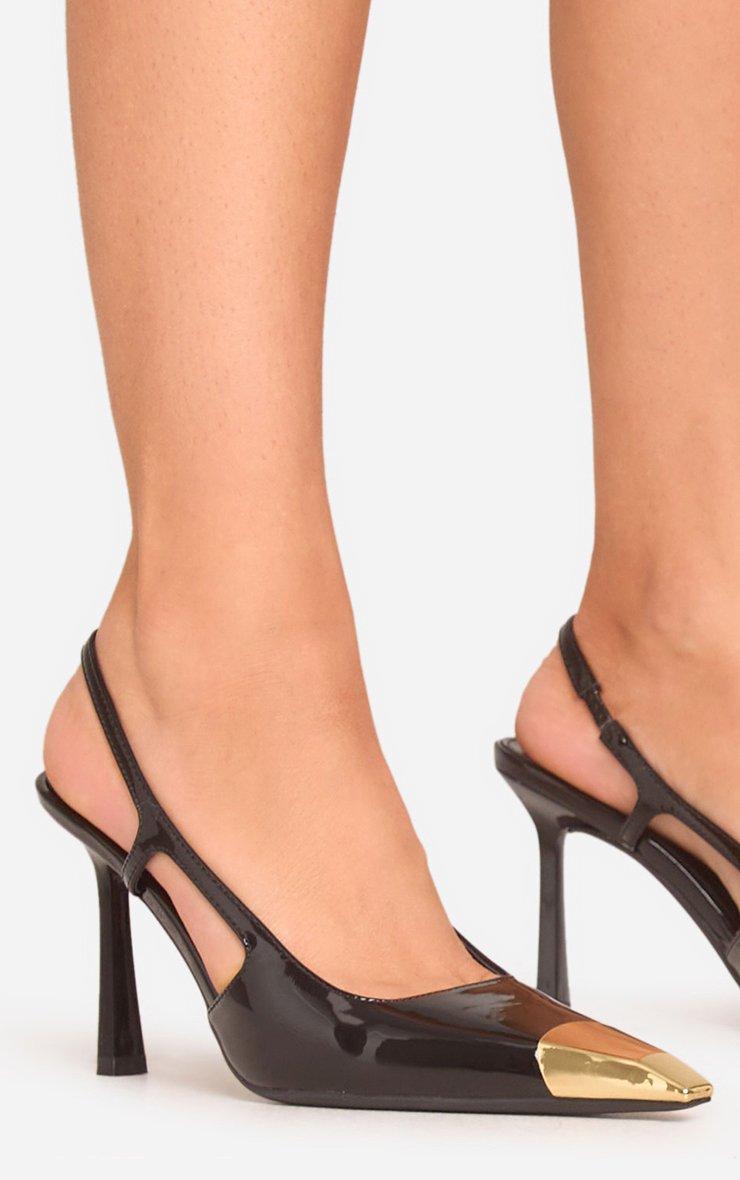 Serve timeless glam with a modern twist! Featuring a black patent material with a pointed gold toe and a sleek slingback design, these court heels are perfect for adding luxe vibes to any outfit, doll.